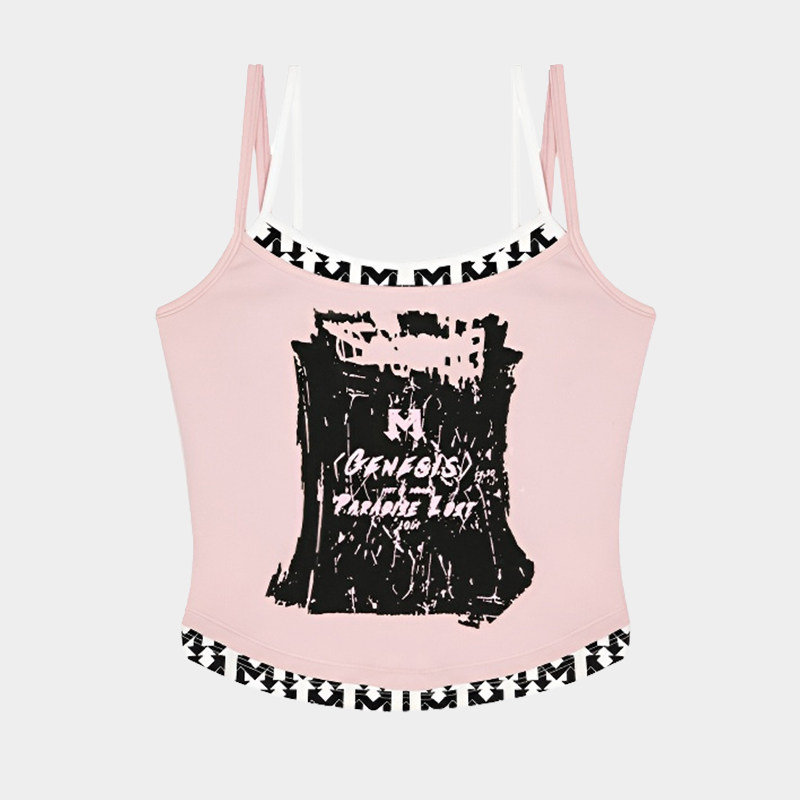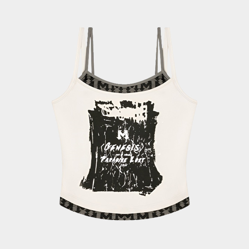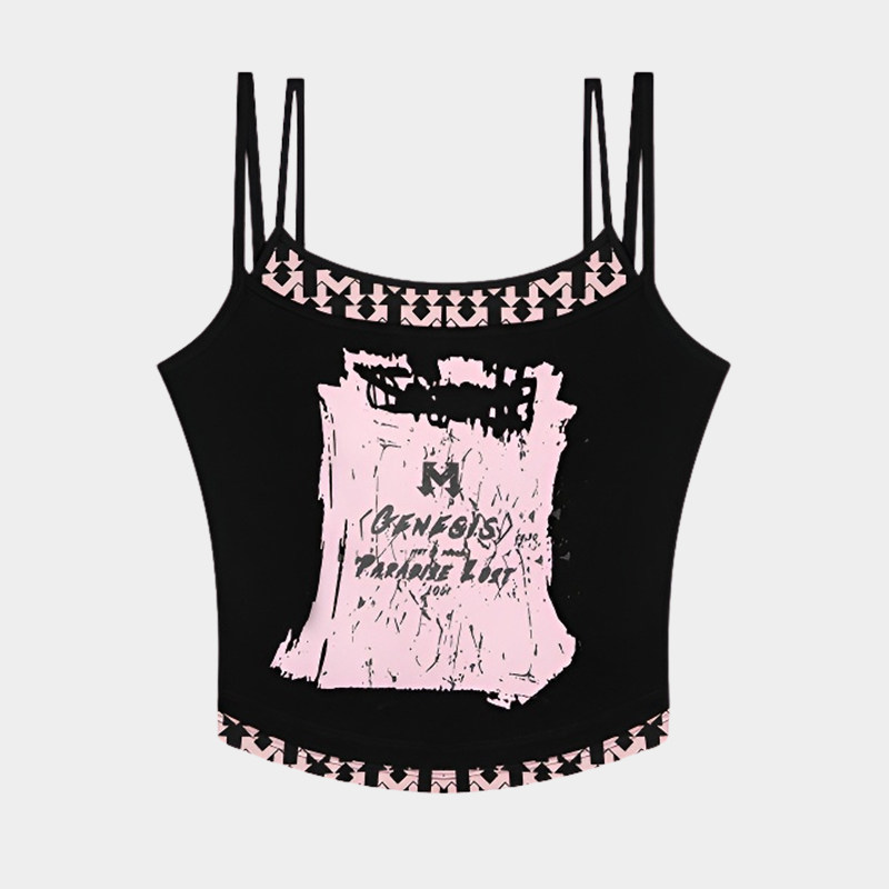MET initaly潮牌假两件涂鸦设计吊带女夏季新款修身上衣