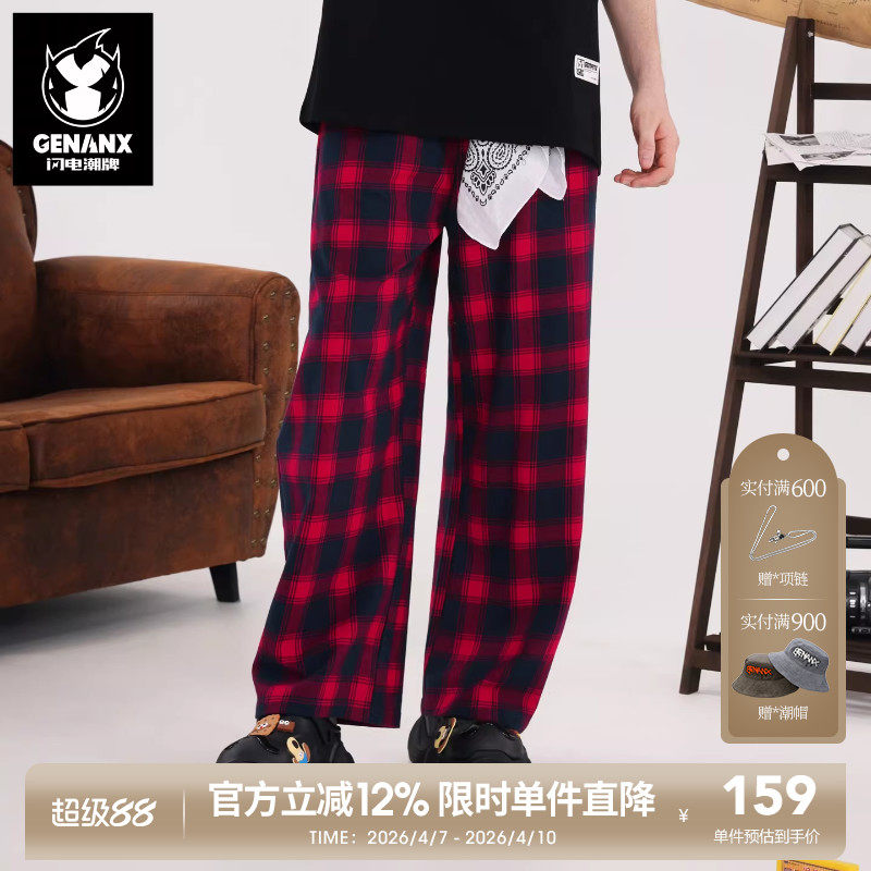 --------------------- GENANX闪电潮牌2025秋季新款宽松简约复古经典慵懒格纹直筒休闲裤 【原售价】199元 【现售价】159元 【推荐理由】