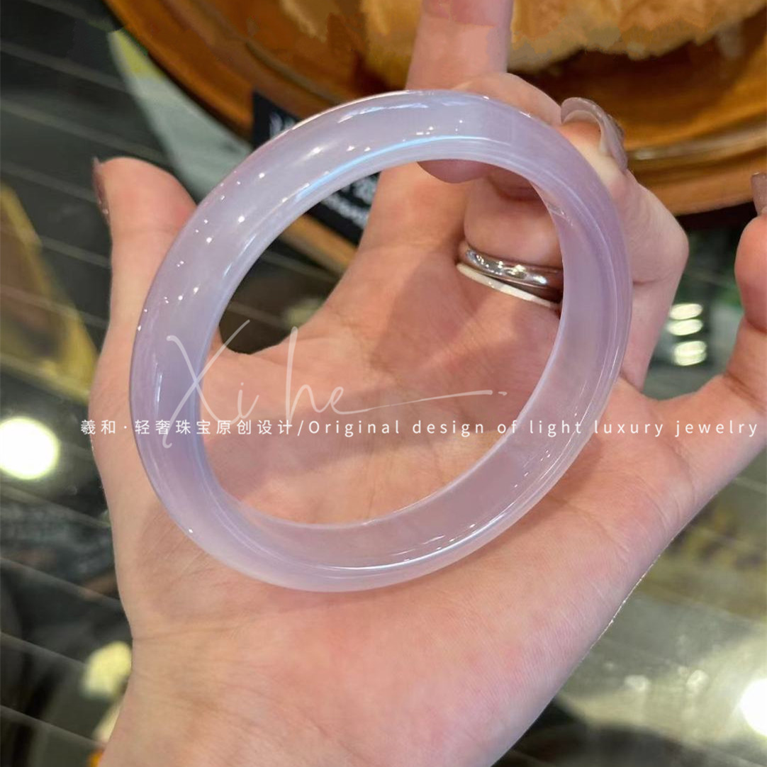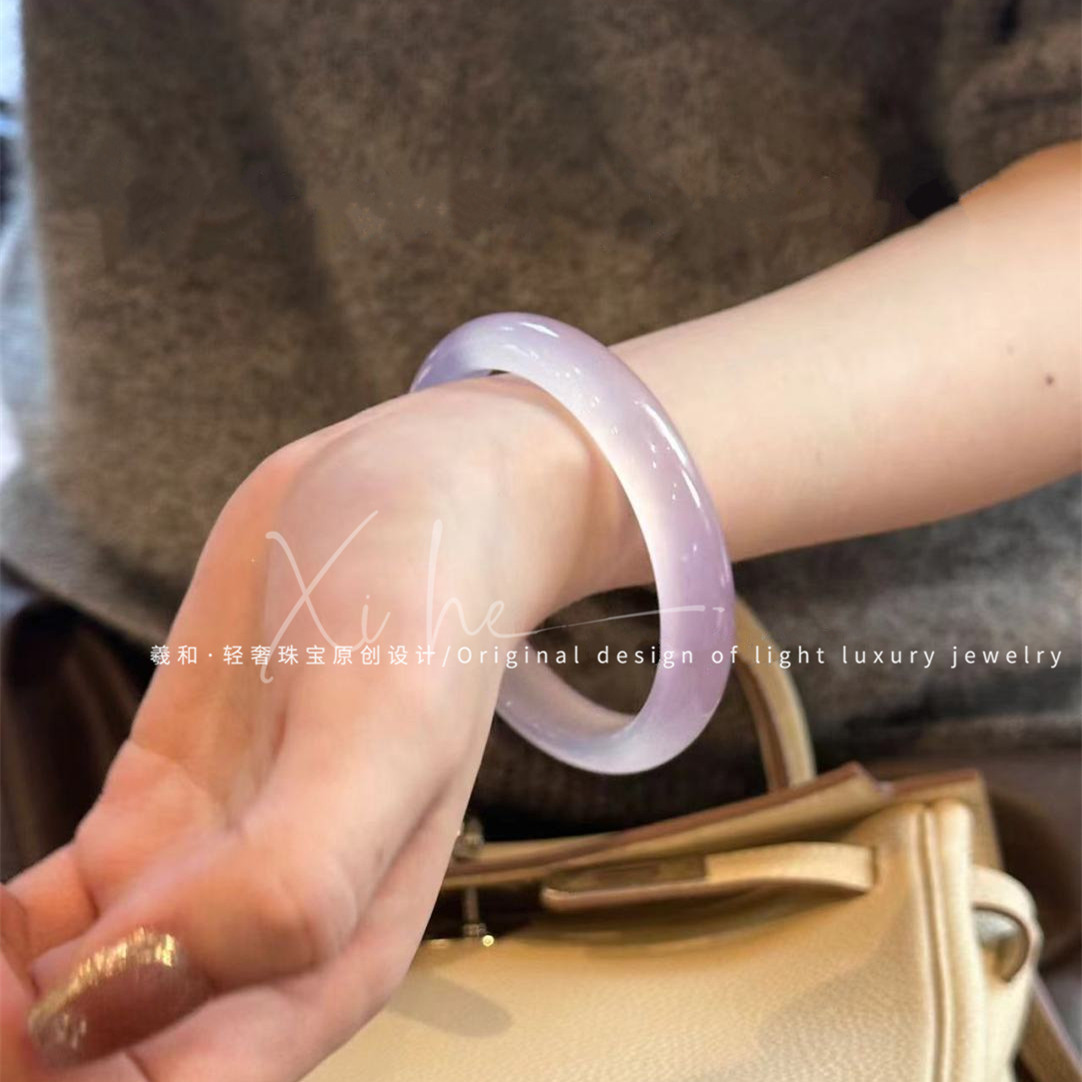淘宝天然紫色玛瑙玉髓手镯女款冰透玉石镯子女士年轻款玉镯高级感礼物