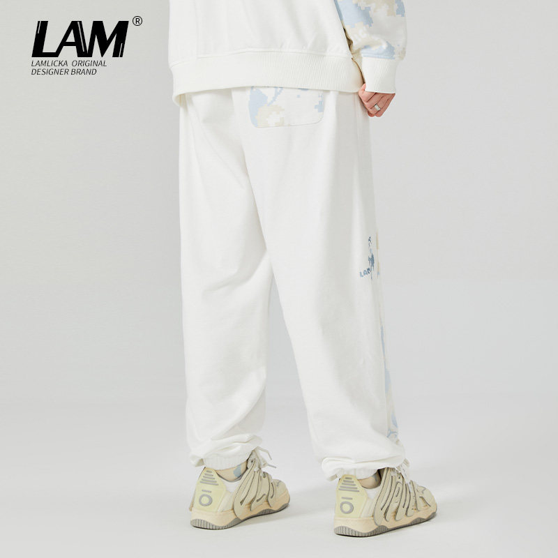 LAMLICKA国潮卡通白色束脚长裤春秋新款宽松休闲小脚休闲裤潮牌女