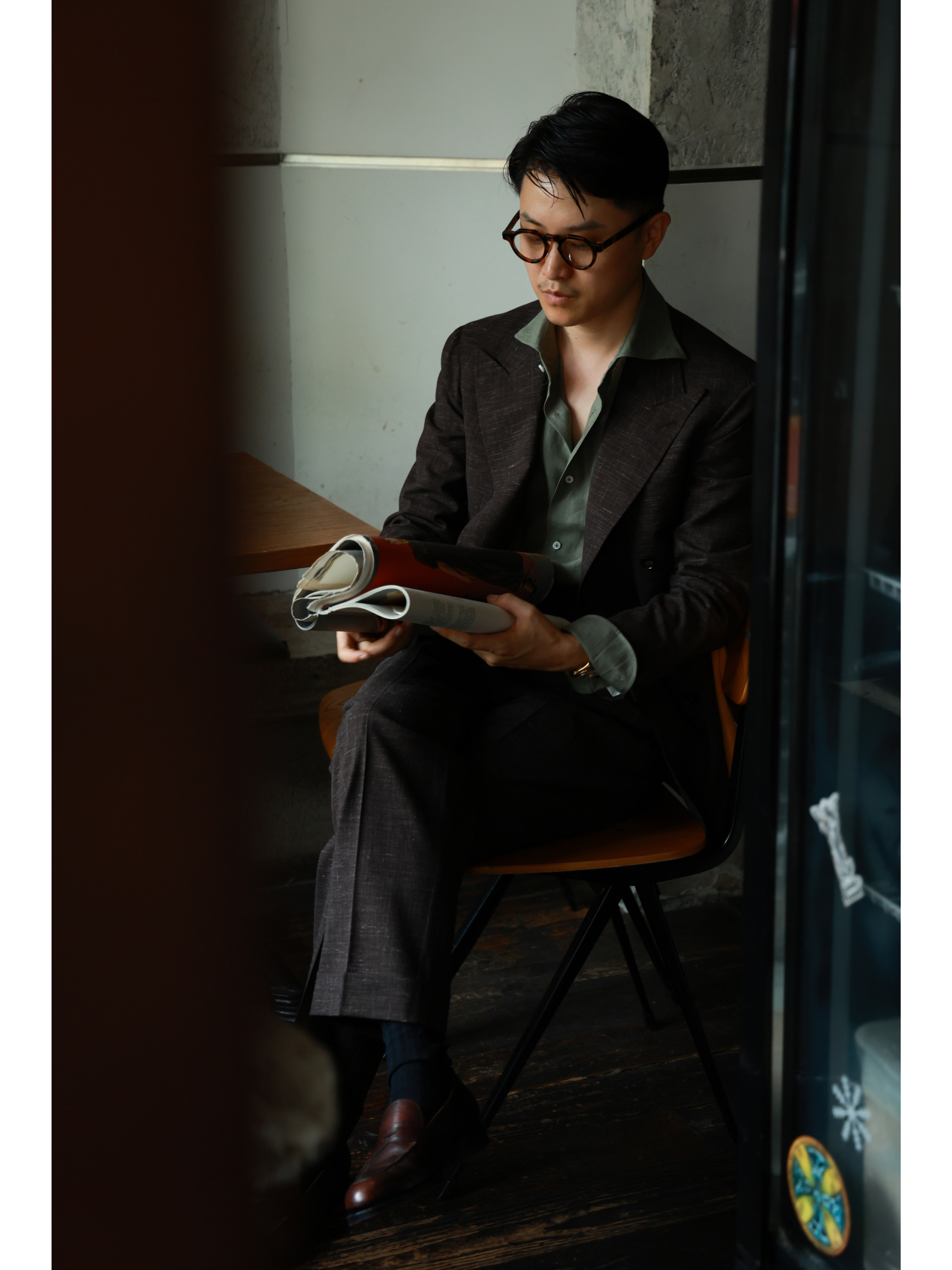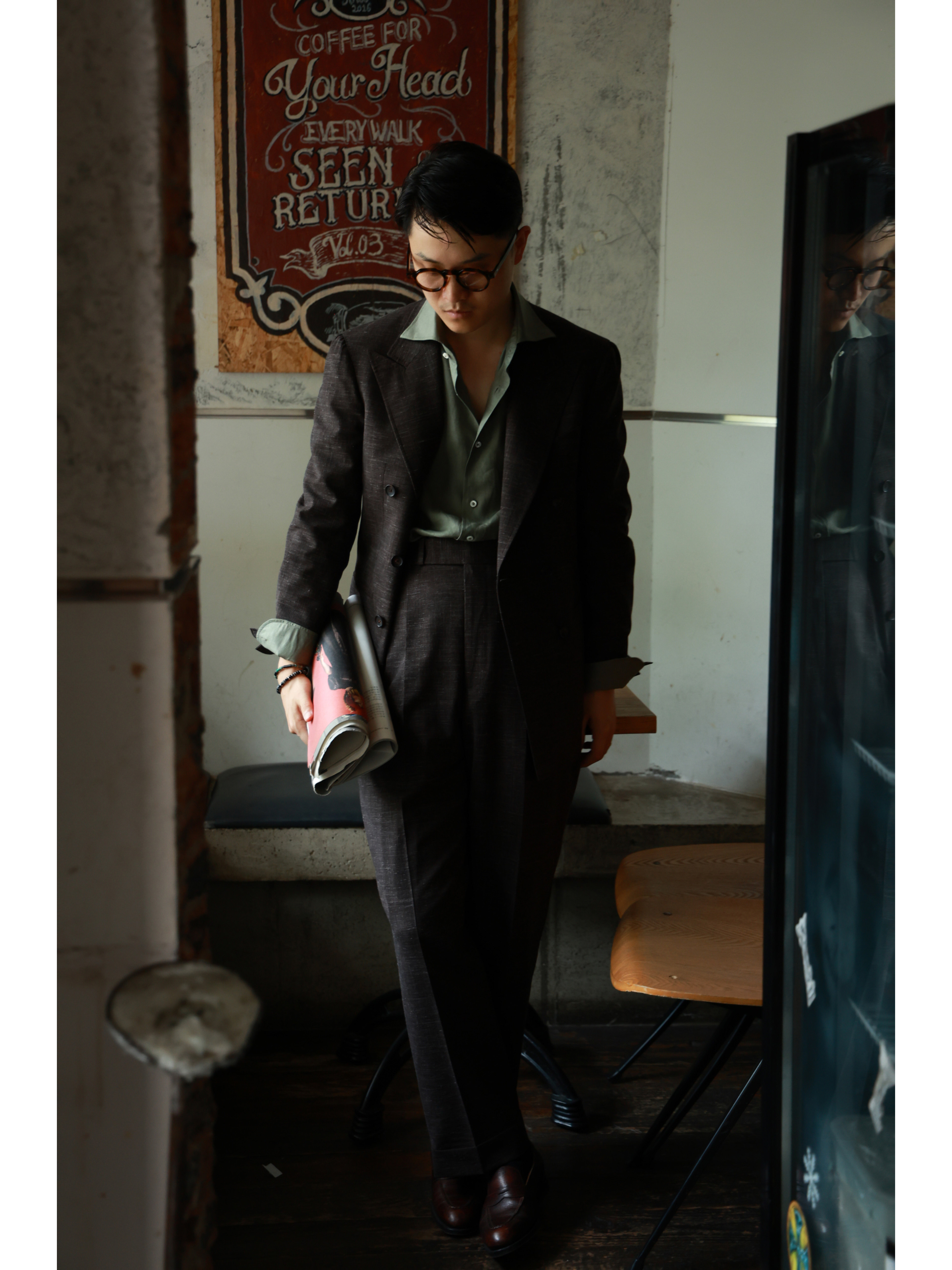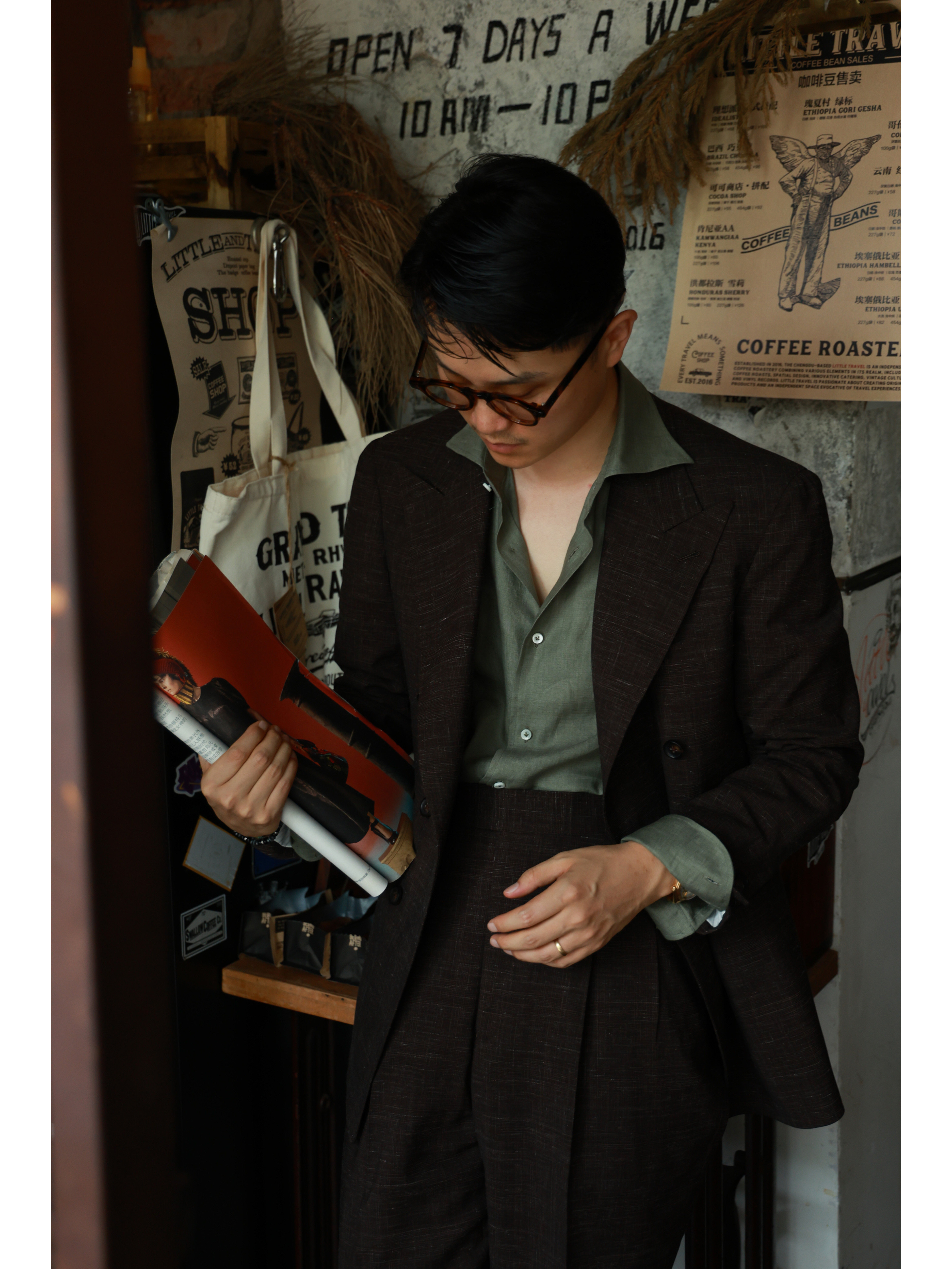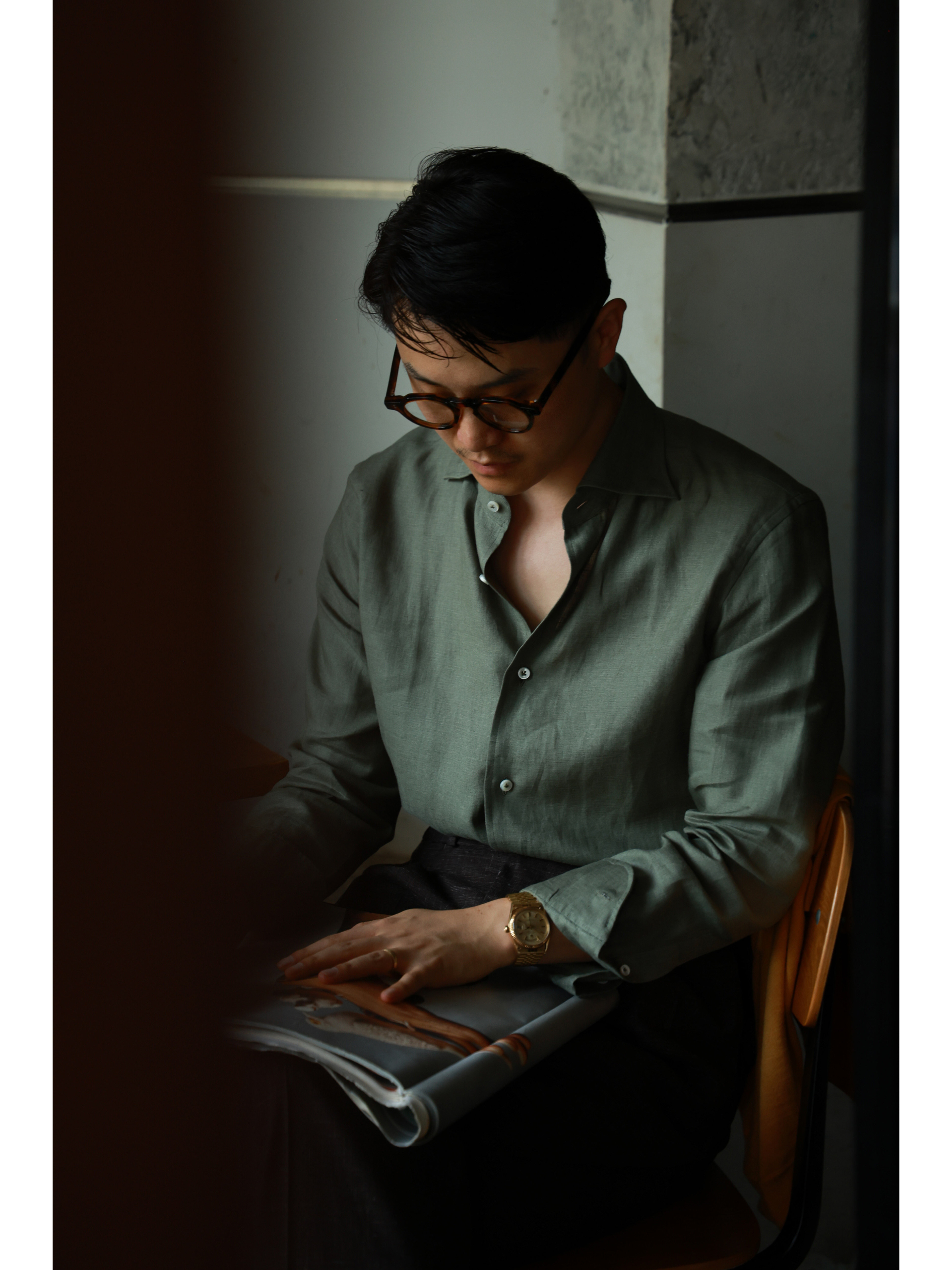 UGENTLE男装 经典系列「 冷杉绿 」 亚麻复古八字领 绅士长袖衬衫