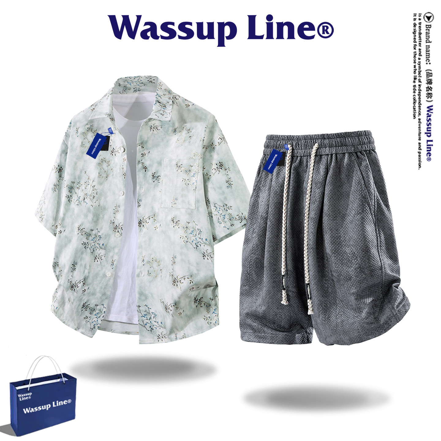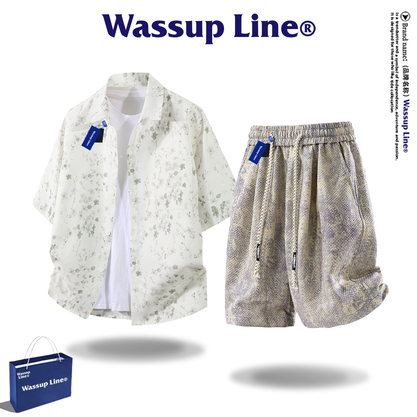 --------------------- WASSUP Line潮牌高级感度假风碎花衬衫套装男春季休闲宽松两件套 【原售价】398元 【现售价】68.6元 【推荐理由】