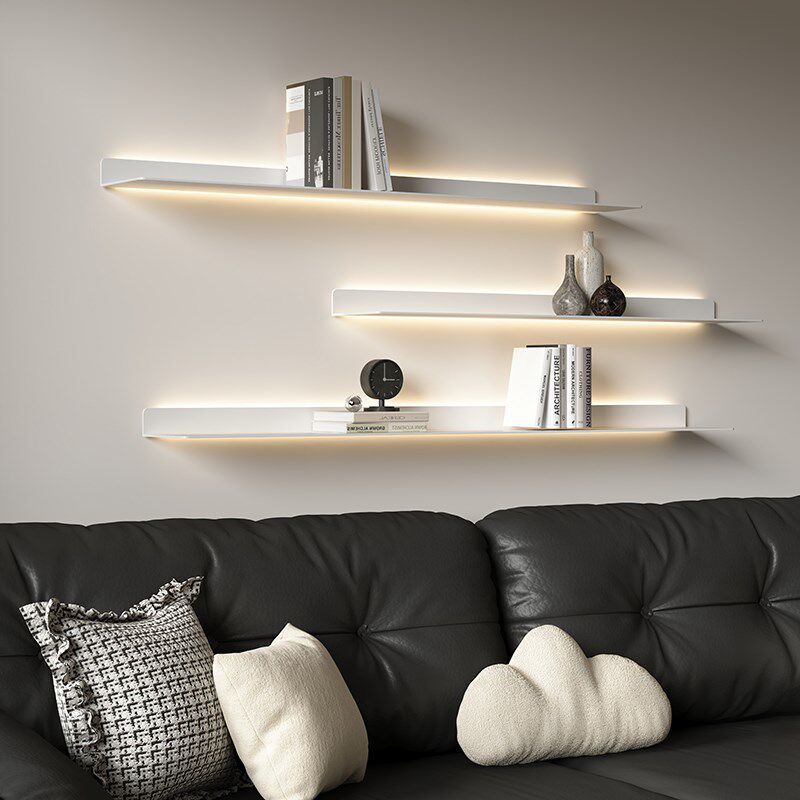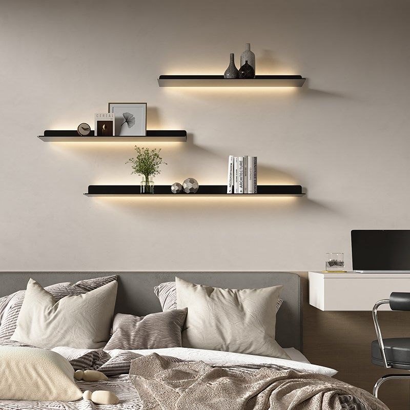 淘宝现代简约墙上置i物架发光一字隔板商品展示架客厅背景装饰卧室书