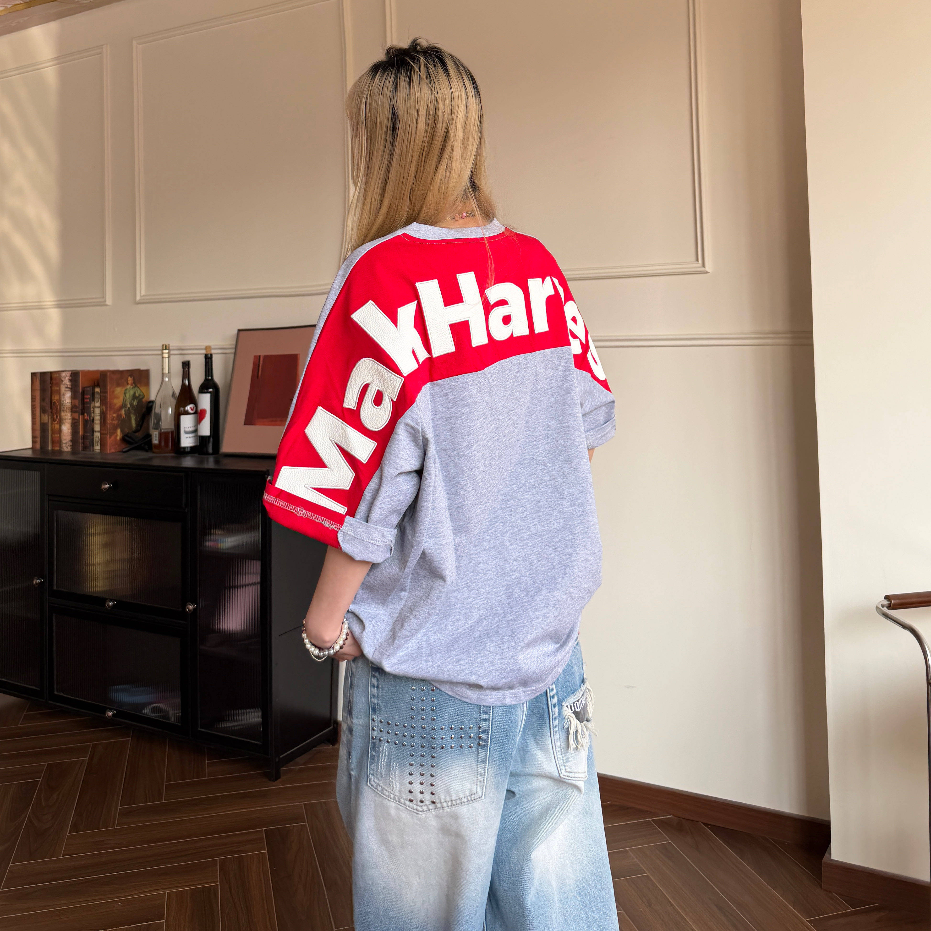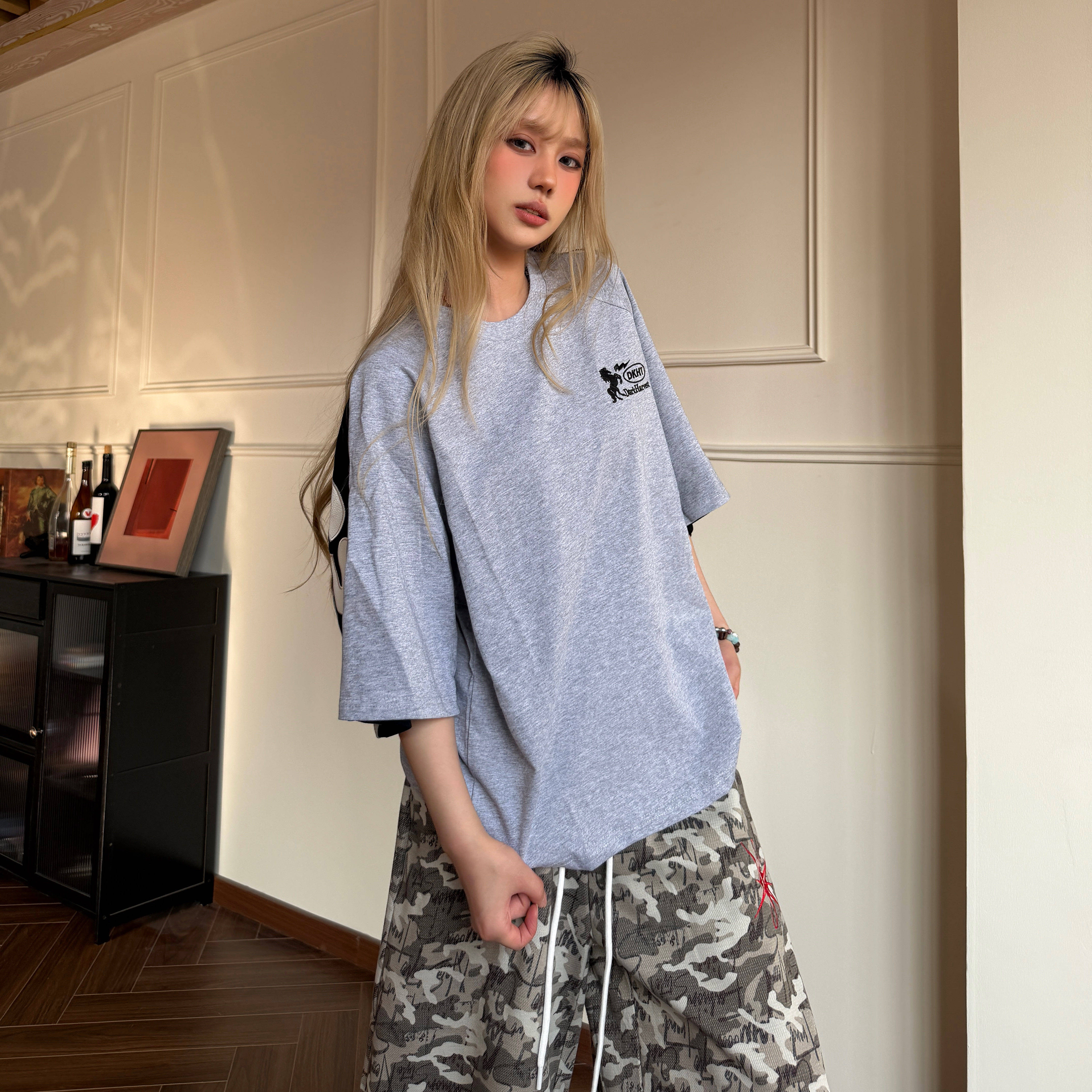 --------------------- Amoeba原创国潮贴皮字母刺绣拼接撞色男女宽松短袖夏季重磅T恤 --------------------- --------------------- 【原价】105元 【券后价】87元