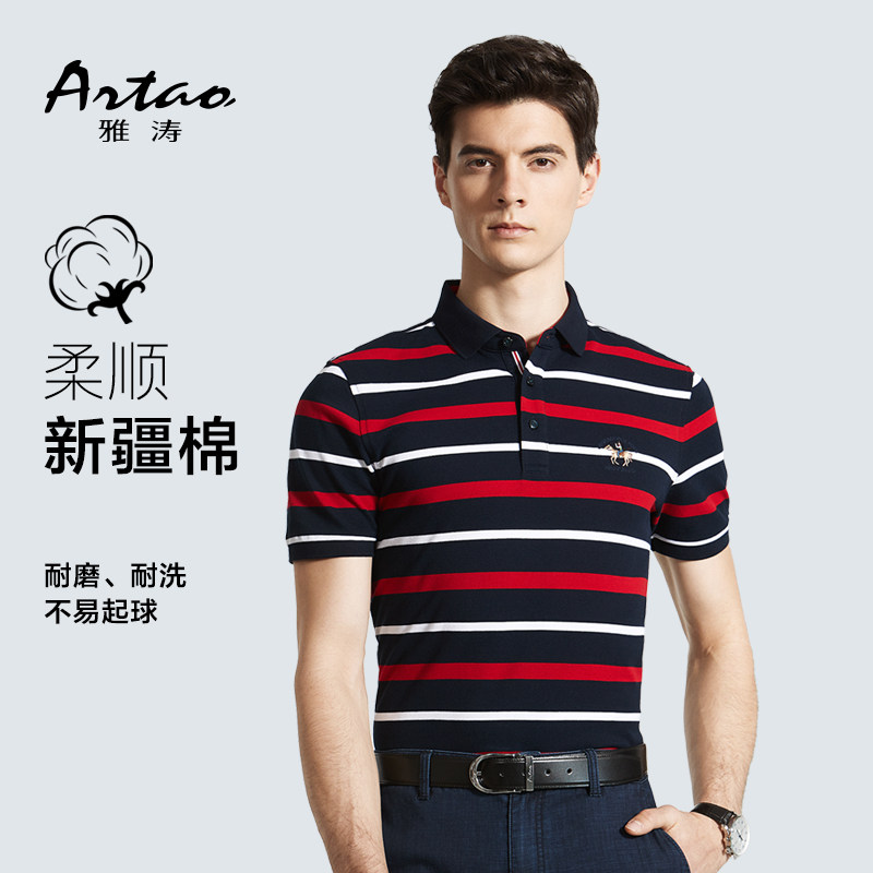 [断码清仓]雅涛男士短袖T恤纯棉夏季条纹翻领商务时尚POLO衫