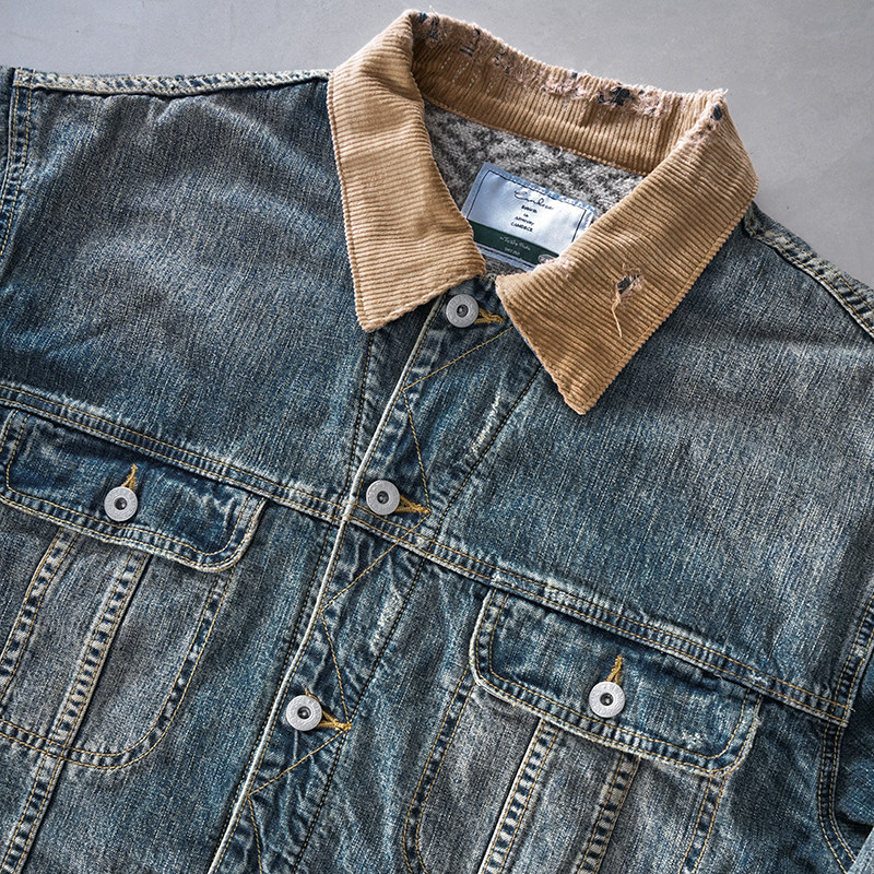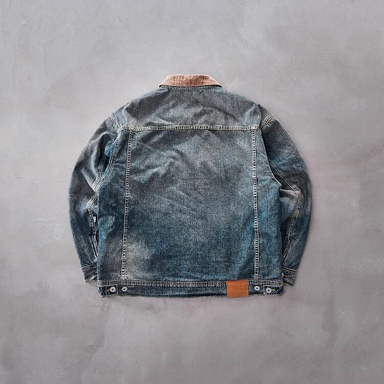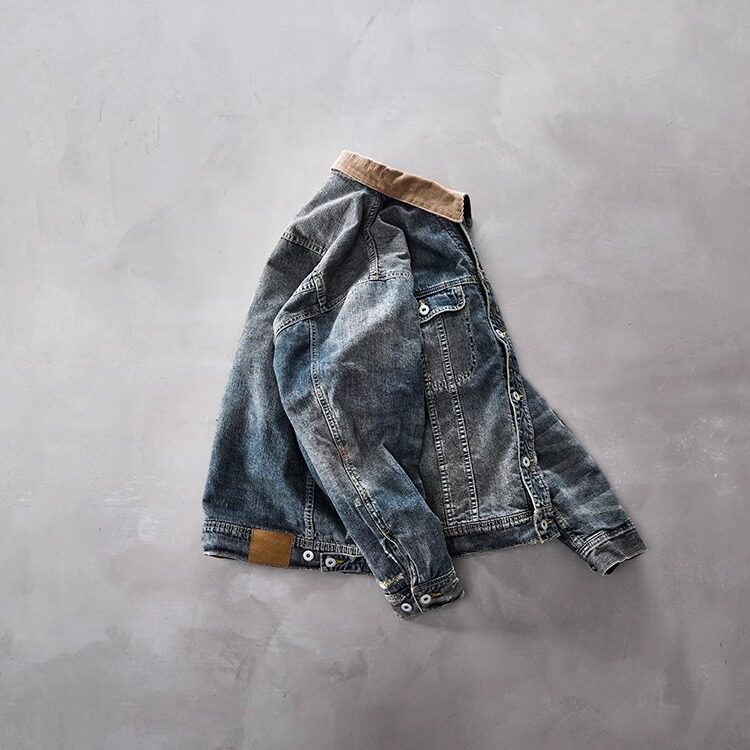 「灯芯绒撞色夹克」Camdrce 地毯水洗喷马骝牛仔夹克男秋季外套潮