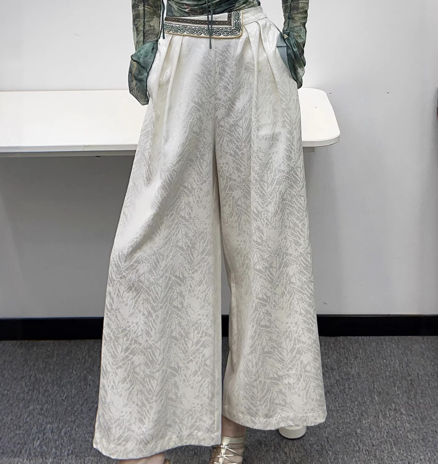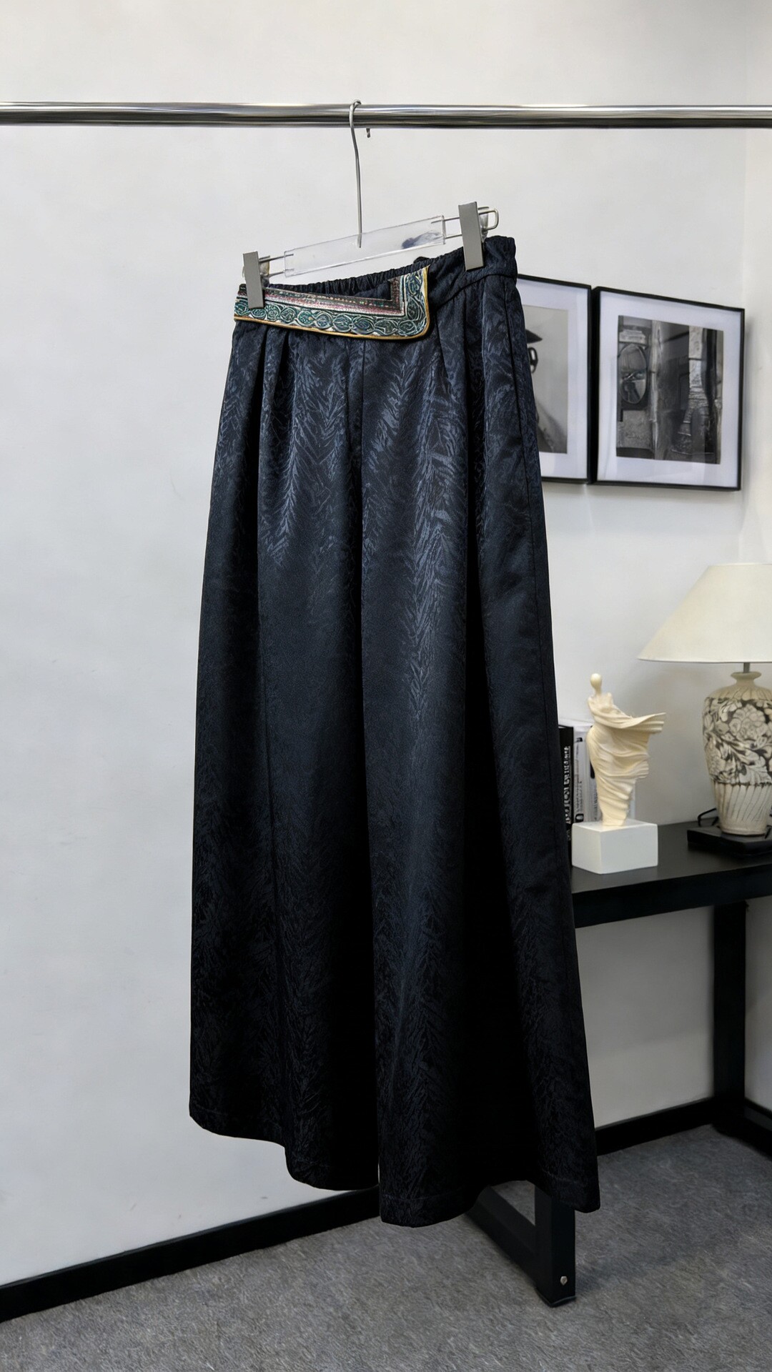 --------------------- 新中式人丝提花刺绣阔腿裤国风大裤脚松紧腰休闲裤国潮百搭裙裤女 --------------------- --------------------- 【原价】999元 【券后价】274元
