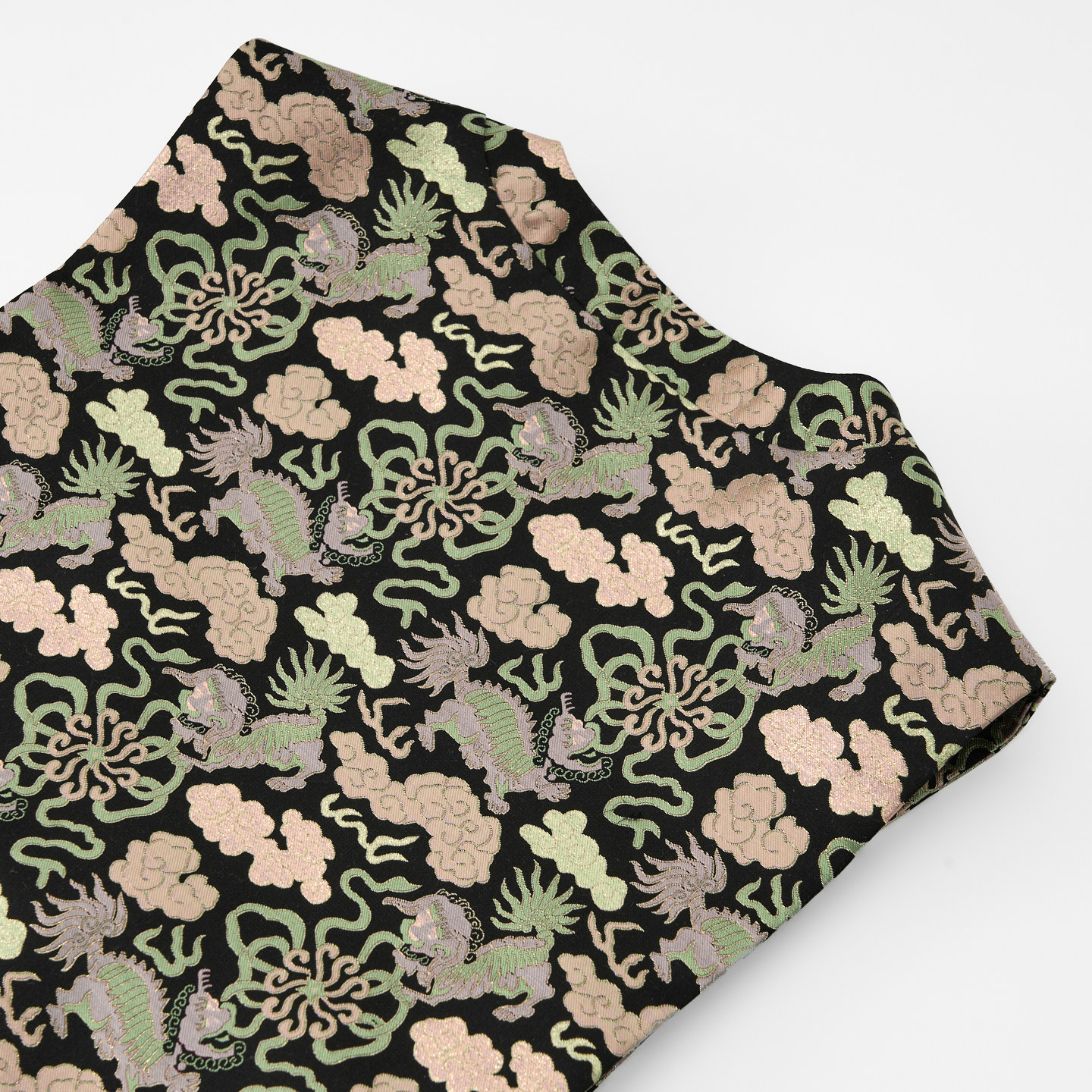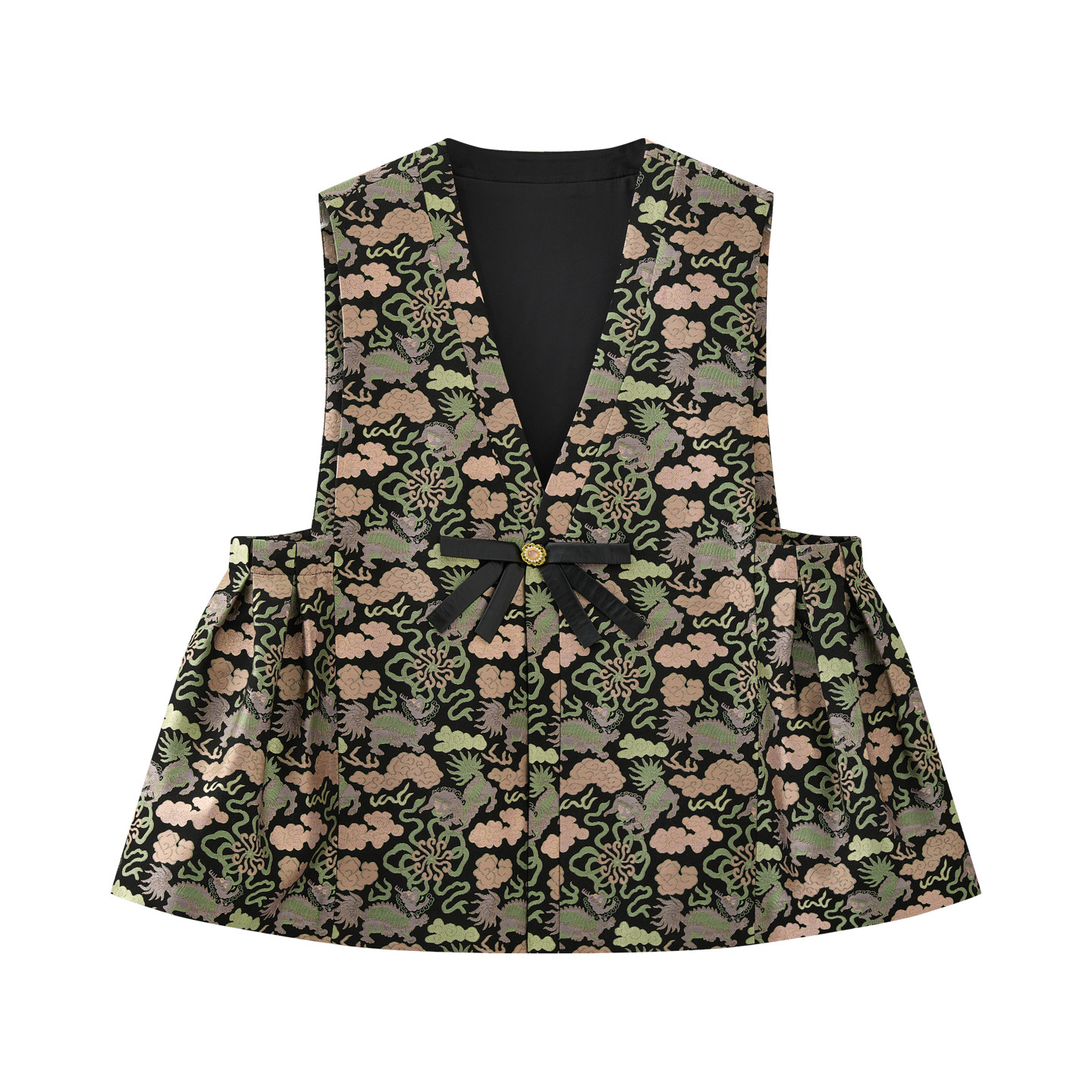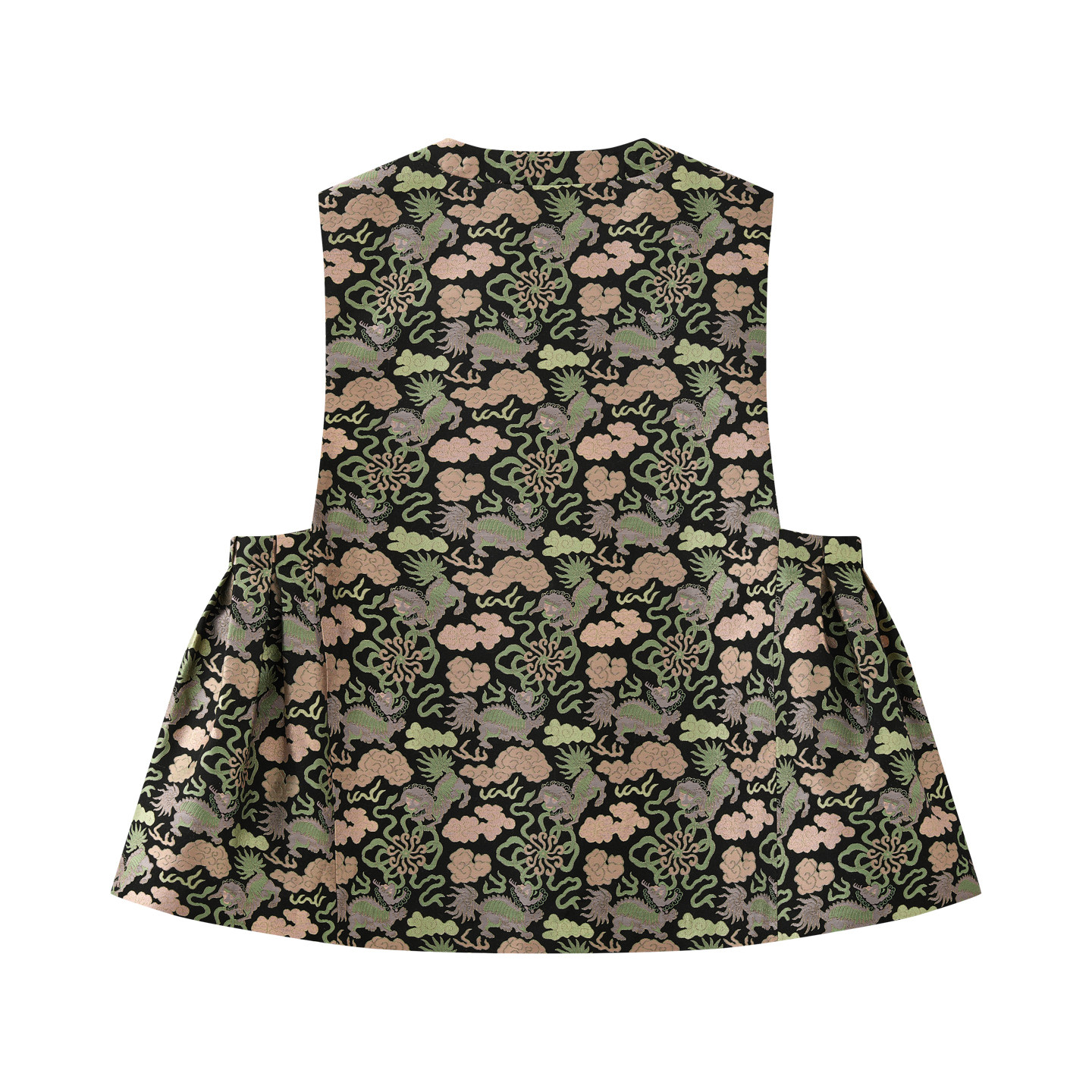 --------------------- JINYU矜羽【墨麟】重工宋锦马甲女 国潮祥云瑞兽纹荷叶摆无袖坎肩 【原售价】1057元 【现售价】898元 【推荐理由】