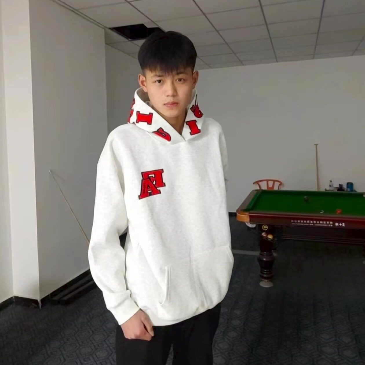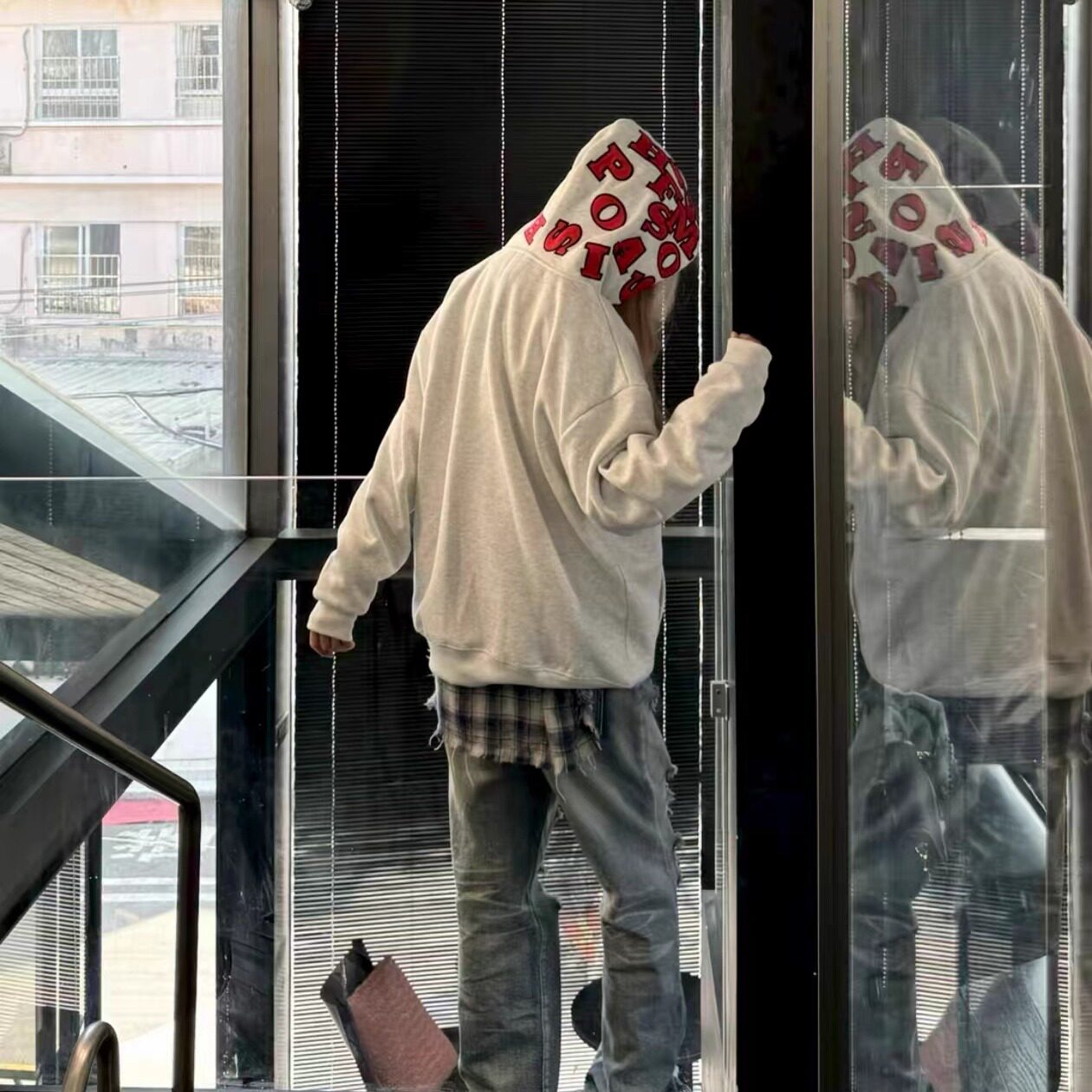 美式复古高街潮牌设计感小众字母Logo基础运动连帽印花慵懒风卫衣