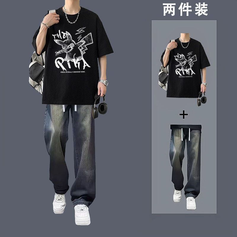 淘宝BENTIDEA 美式短袖T恤套装男高中初中生夏季ins青少年学生潮流