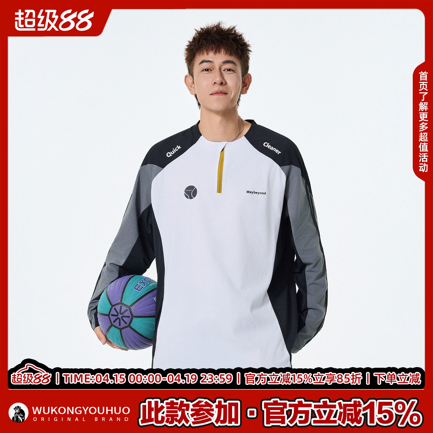 --------------------- 悟空有货户外运动风撞色拼接半拉链长袖T恤男女宽松百搭休闲上衣 【原售价】156元 【现售价】63.7元 【推荐理由】