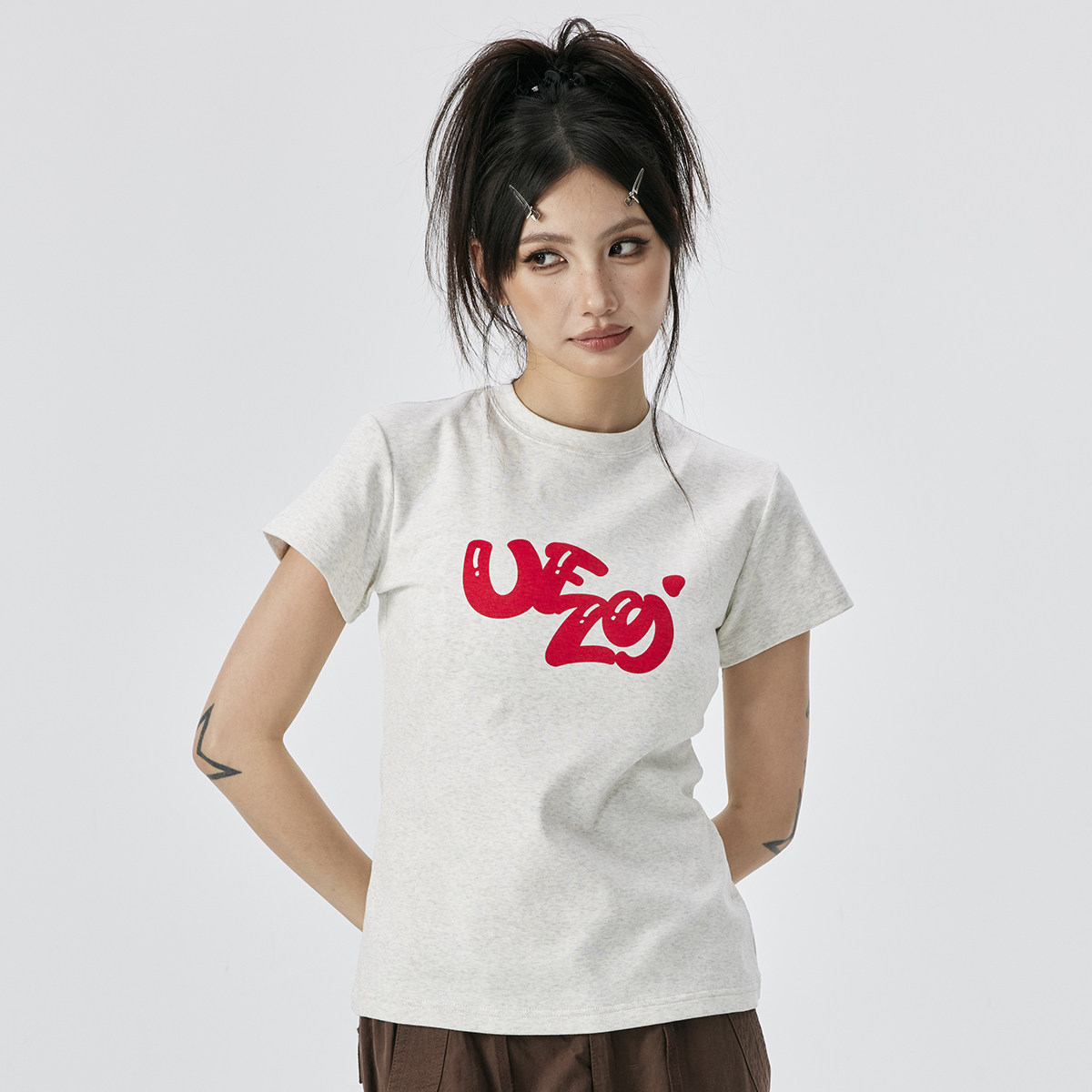 --------------------- UFZ「轻氧凉感」美式辣妹短款t恤轻薄透气夏季潮牌女生修身短袖 【原售价】999元 【现售价】87.1元 【推荐理由】