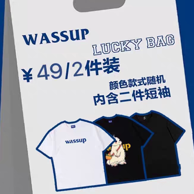 --------------------- WASSUP BEAVER国潮重磅纯棉短袖夏季男女特价亏本清仓T恤情侣福袋 【原售价】99元 【现售价】43.1元 【推荐理由】