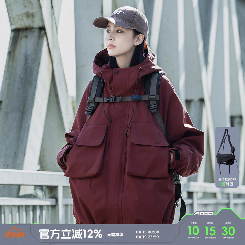 AOGZ大口袋工装百搭夹克春秋季骑行户外机能徒步情侣连帽冲锋外套