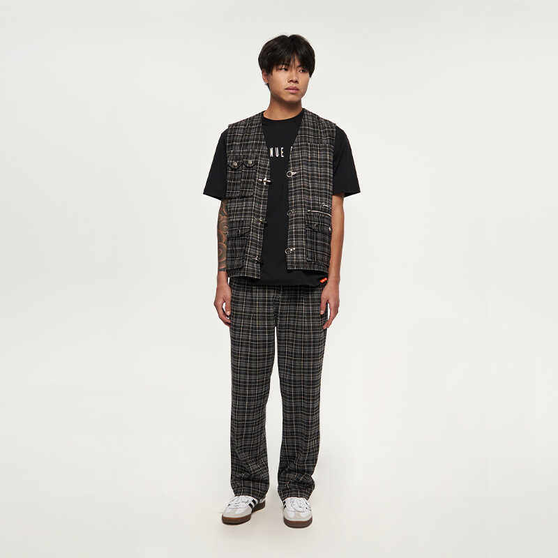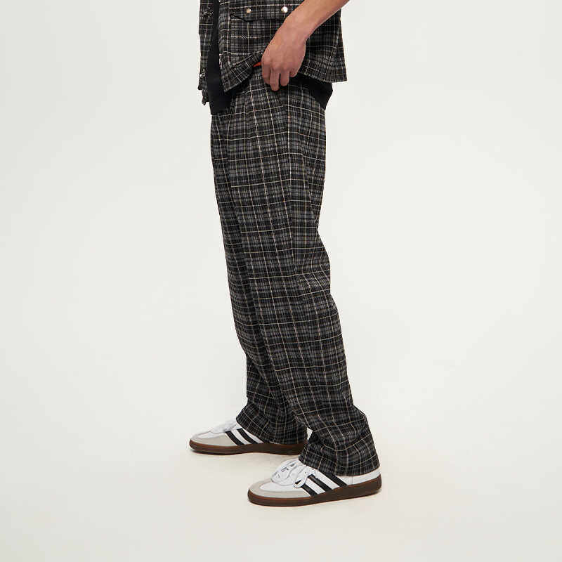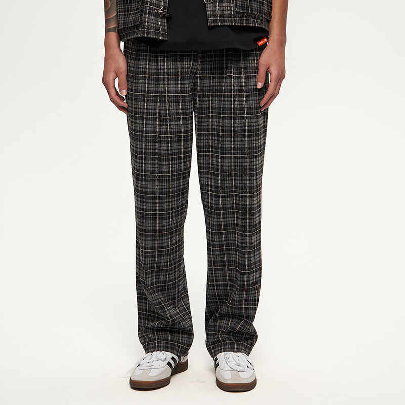 AVENUE & SON 大道之子 2024春夏 格纹休闲滑板直筒可调节西裤