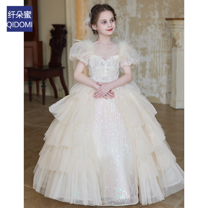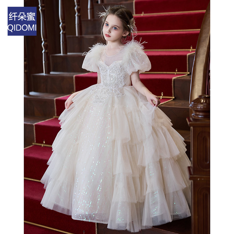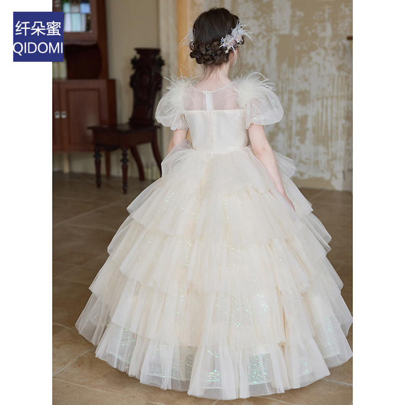 法式女童礼服2026新款泡泡袖蓬蓬公主裙高级感轻奢毕业儿童演出服