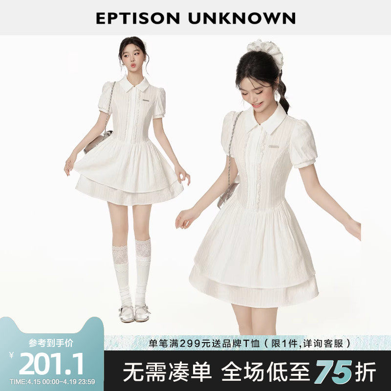 --------------------- EPTISON短袖连衣裙女2026夏季新款学院风白色泡泡袖甜美收腰裙子 【原售价】269元 【现售价】201元 【推荐理由】