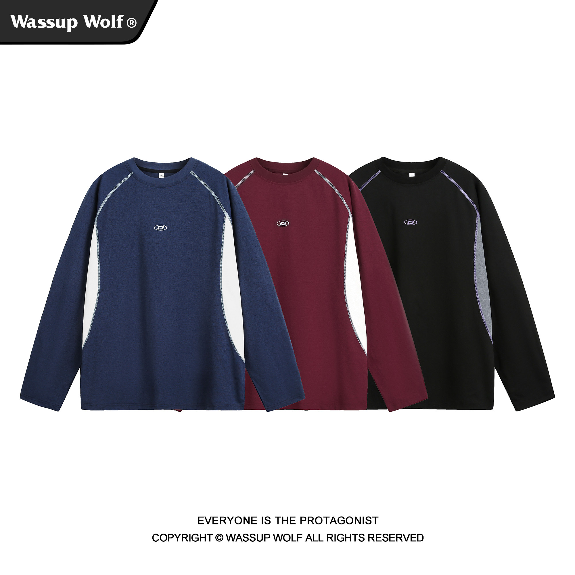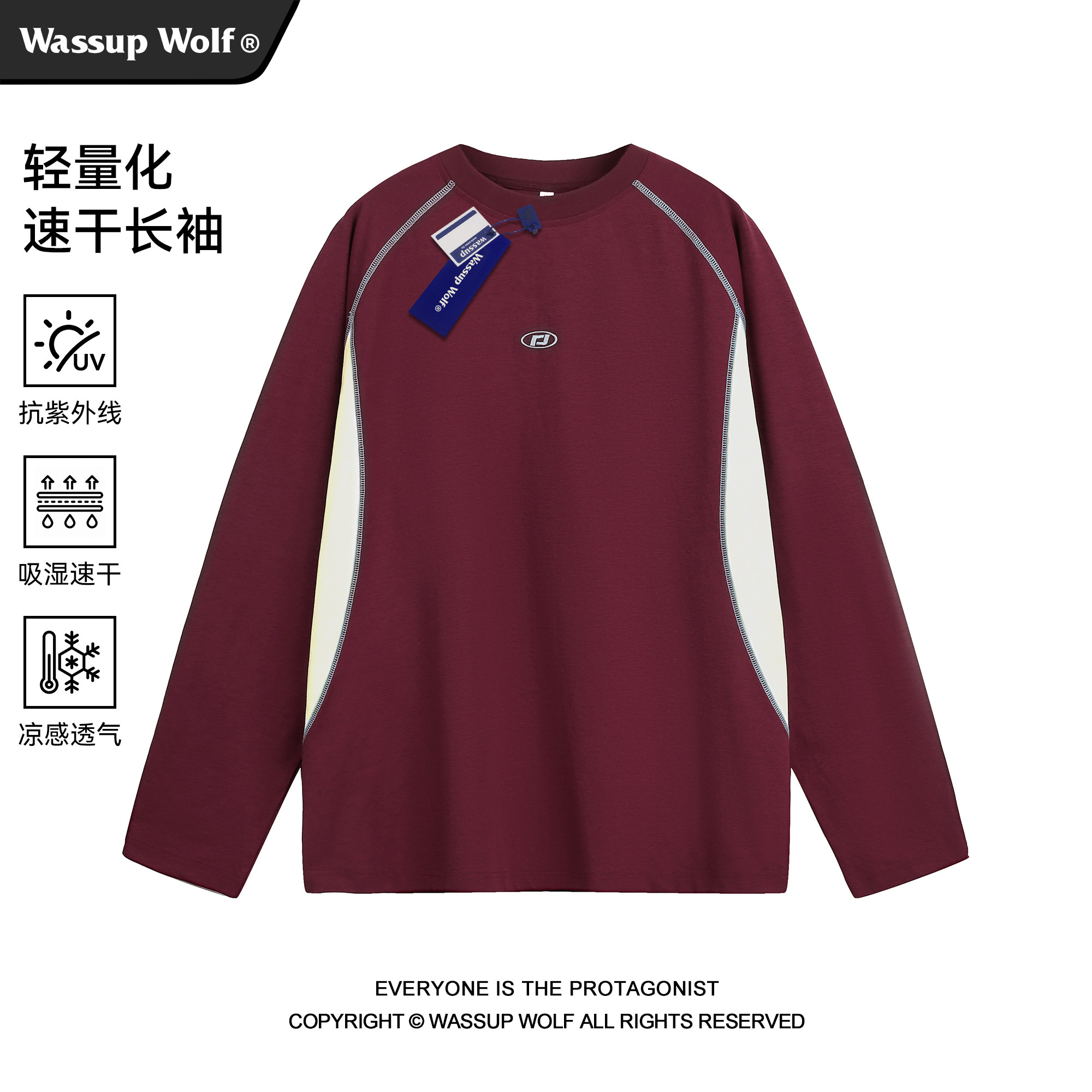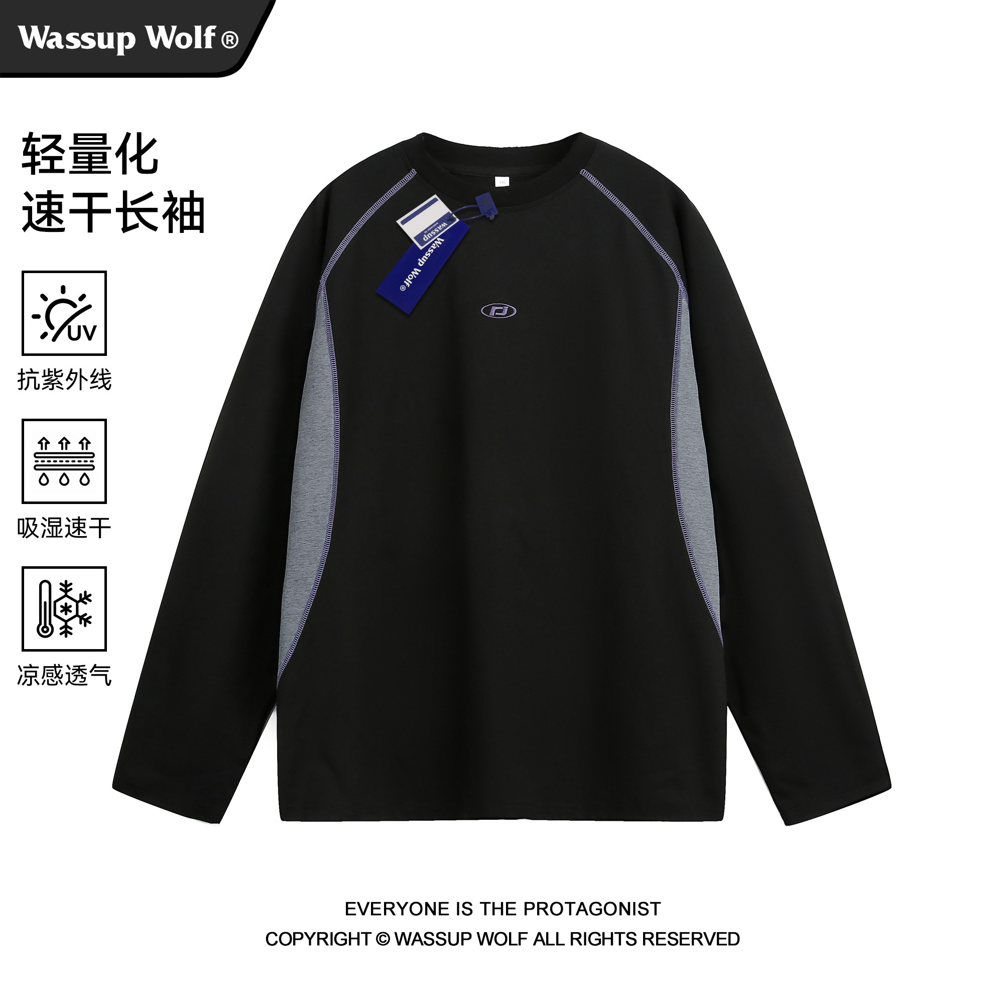 Wassup Wolf户外运动凉感速干撞色长袖T恤男骑行羽毛球服情侣上衣