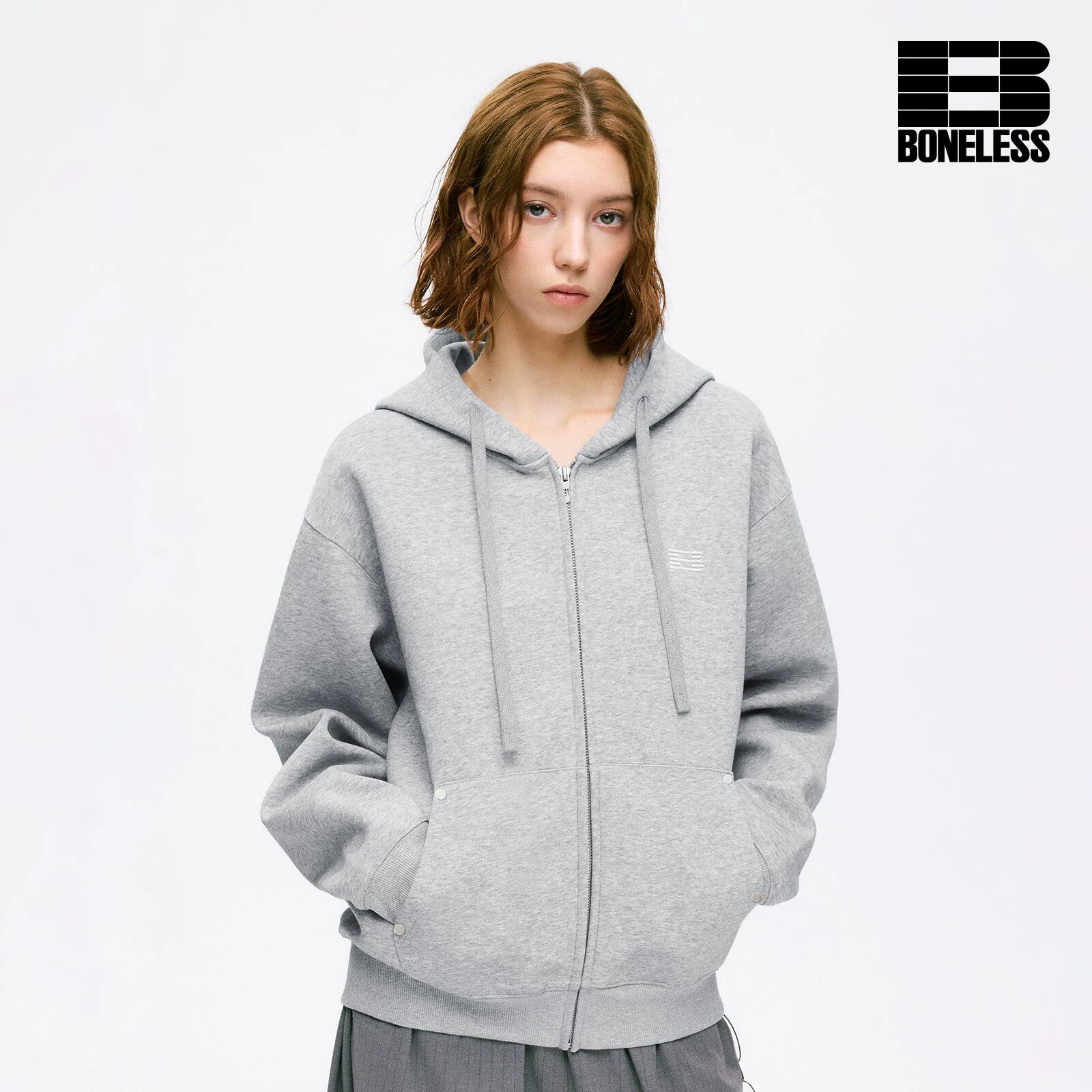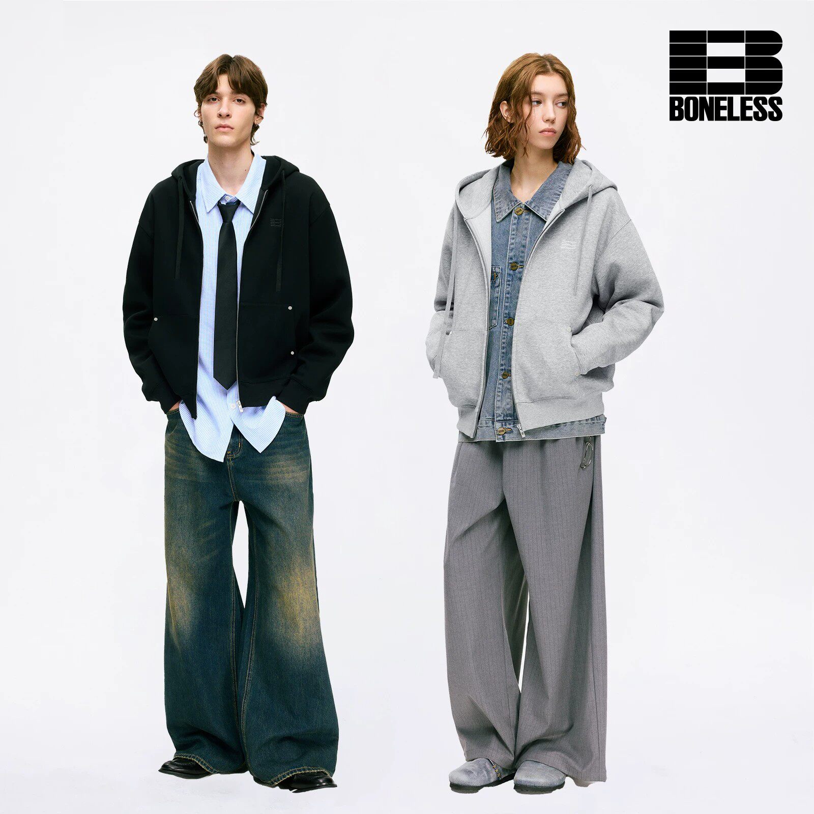 BONELESS休闲连帽拉链开衫卫衣刺绣宽松百搭挺括有型通勤保暖外套
