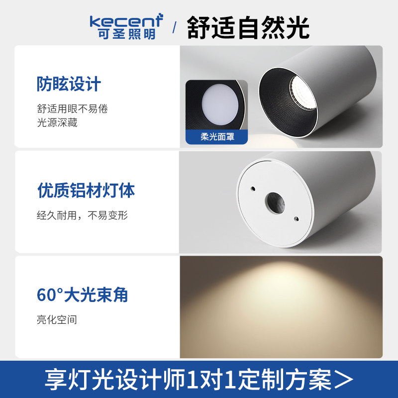 --------------------- 可圣照明 led明装筒灯防眩免开孔不吊顶圆形无主灯家用客厅全光谱 --------------------- --------------------- 【原价】144元 【券后价】121元