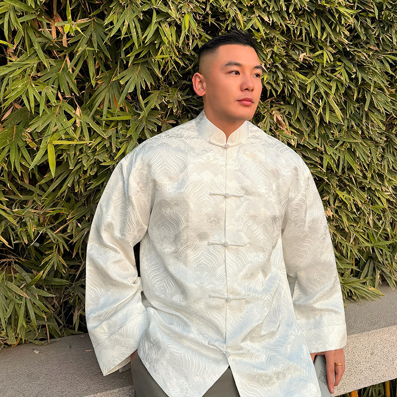 皓月*三重门真丝混纺中式国风男装唐装盘扣中国风高级感爸爸外套