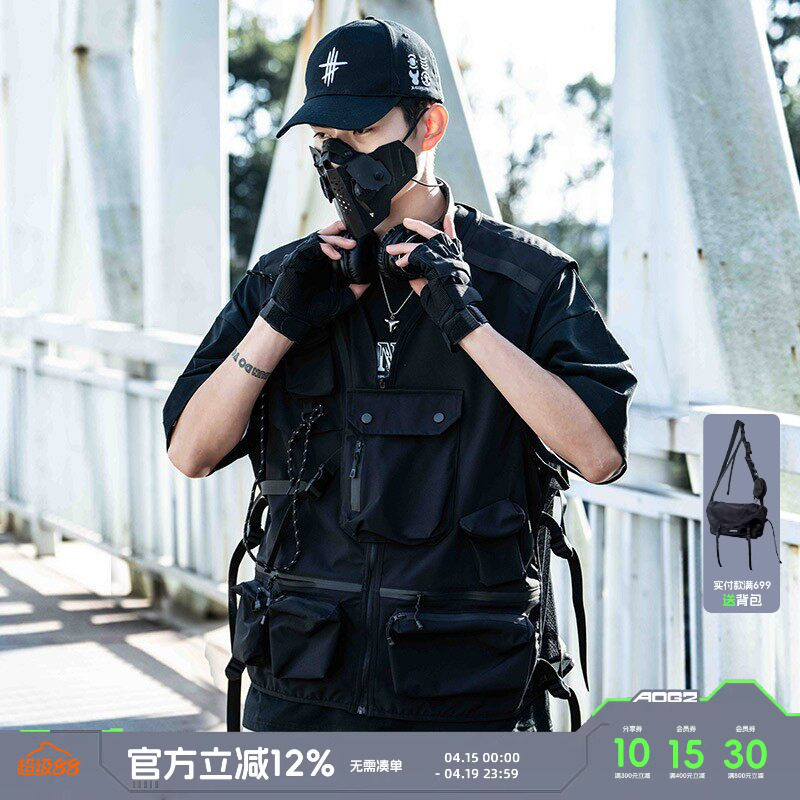AOGZ先锋机能马甲外套男春夏多口袋宽松情侣坎肩战术无领马夹背心