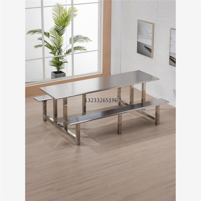 淘宝食堂餐桌椅学校学生员工厂4人6人8人连体快餐桌椅组合不锈钢餐桌