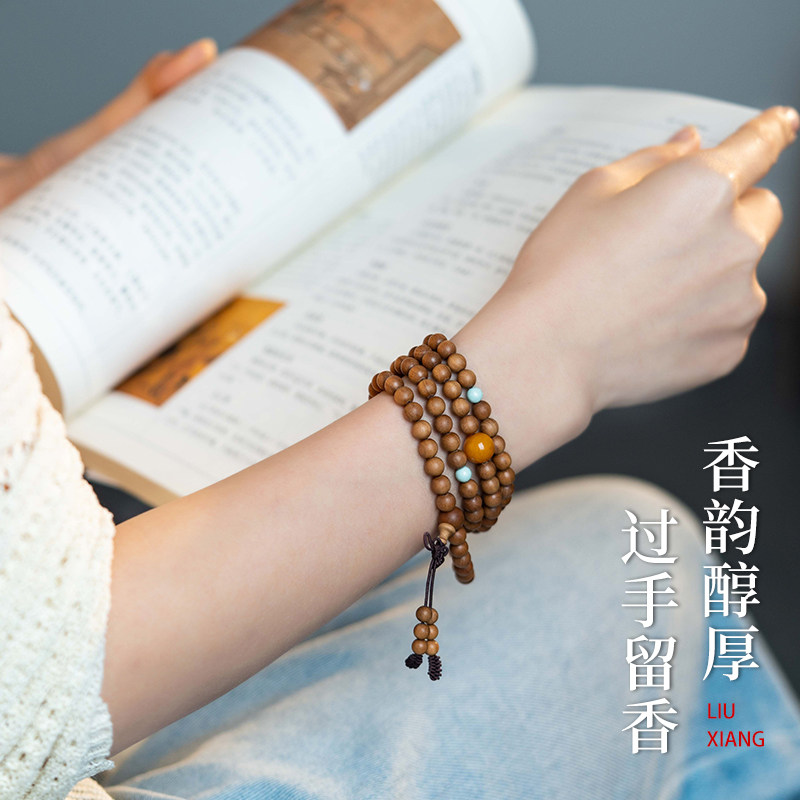 佑匠正宗印度老山檀香108颗佛珠手串男女情侣国潮风原创手链项链