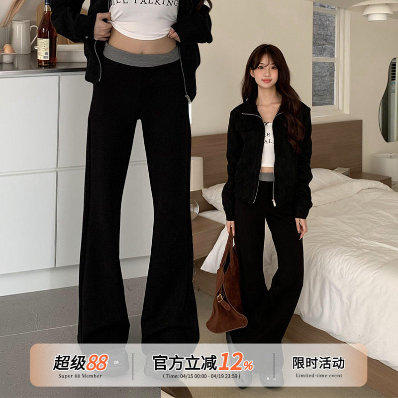 橘子树在哪儿腰头撞色休闲弹力喇叭裤女春季修身显瘦垂感拖地卫裤