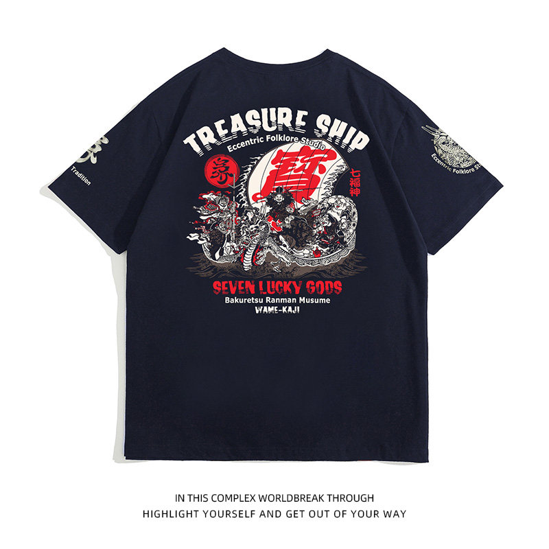 淘宝清 特 夏季日系潮牌T恤短袖男个性风原宿风浮世绘圆领宽松半袖