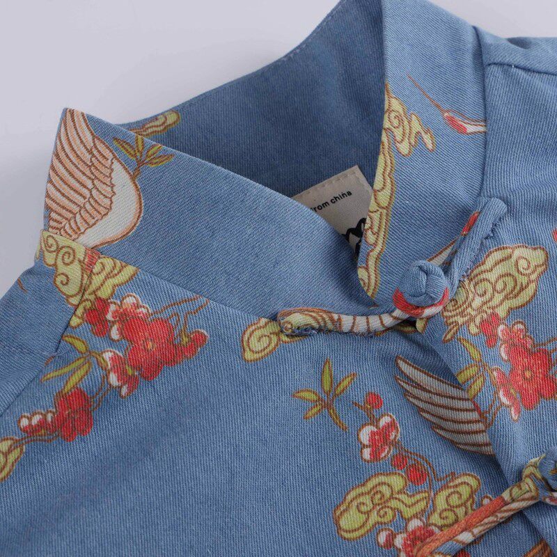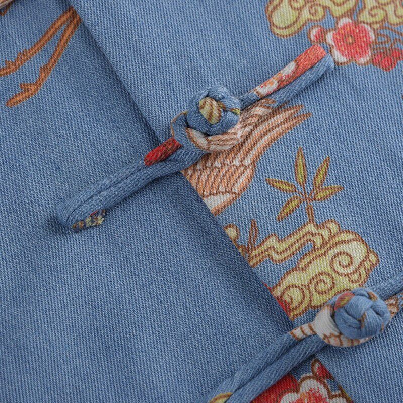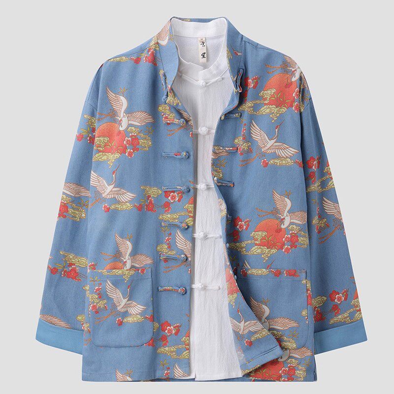 春季中国风装牛仔仙鹤印花外套唐装盘扣外套复古汉服宽松大码上衣