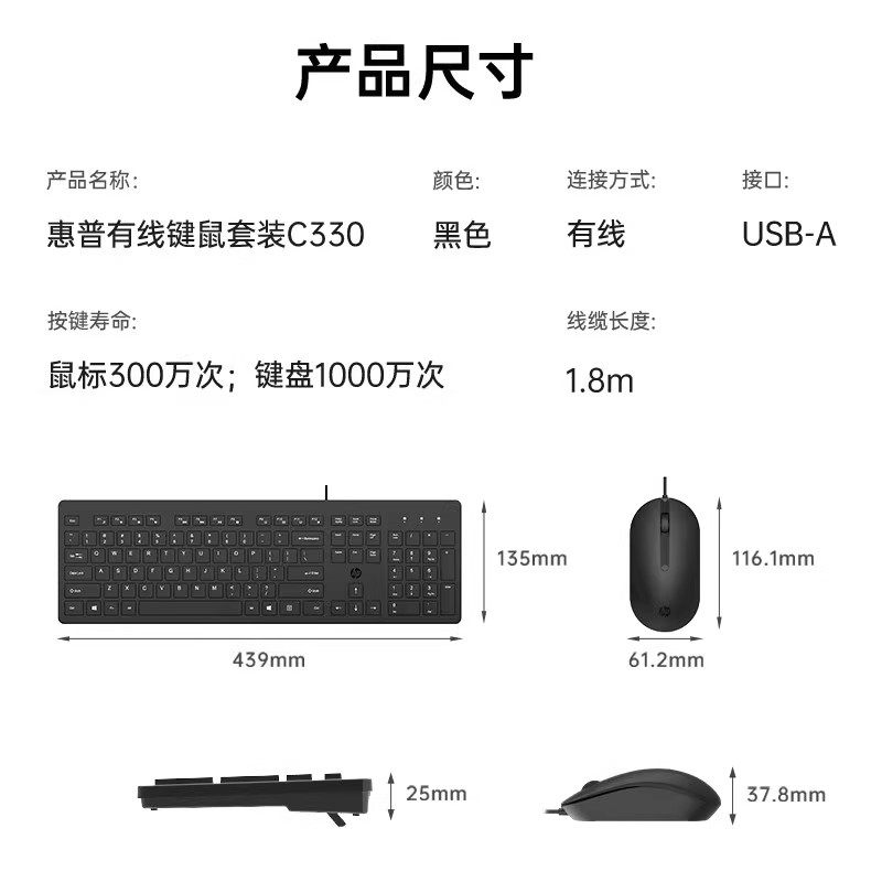 淘宝HP/惠普C330有线键盘鼠标套装USB巧克力商务办公家用台式笔记本