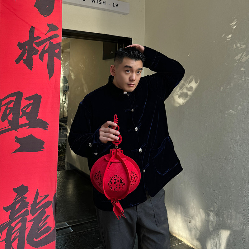 青华*三重门新款秋冬原创真丝绒唐装外套复古男中国风桑蚕丝国潮