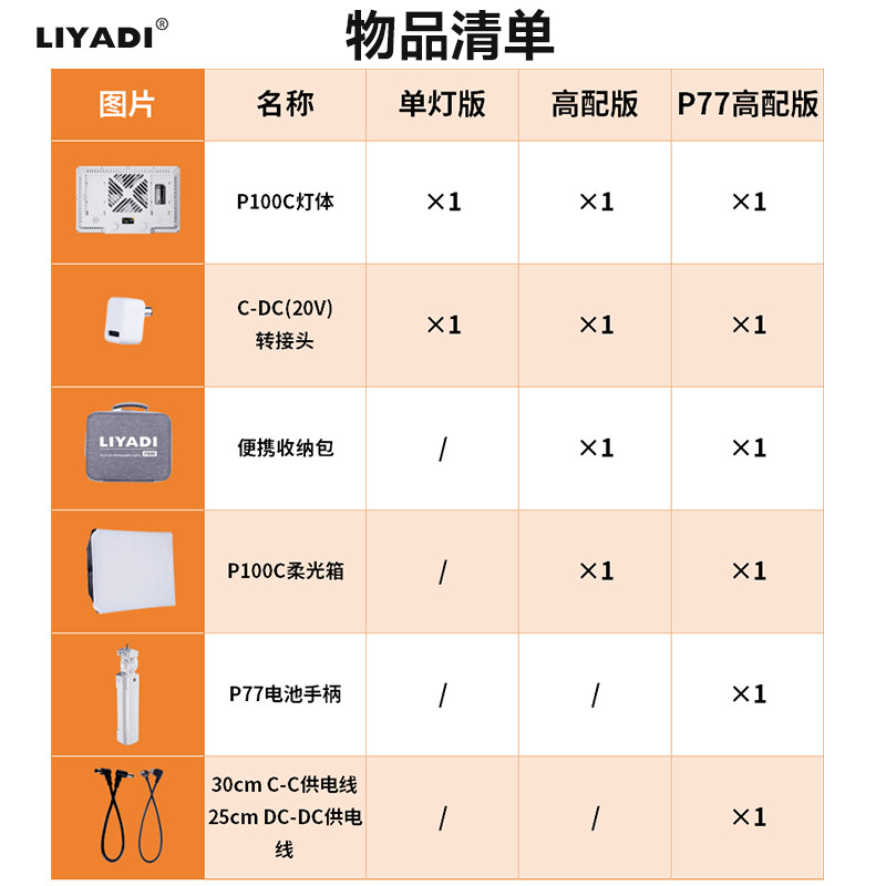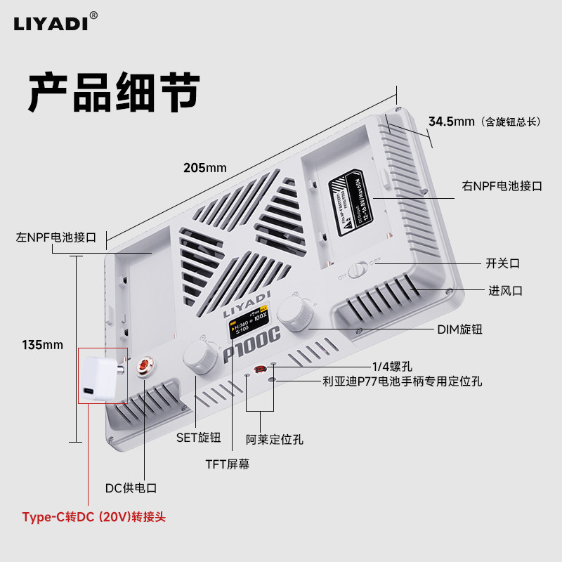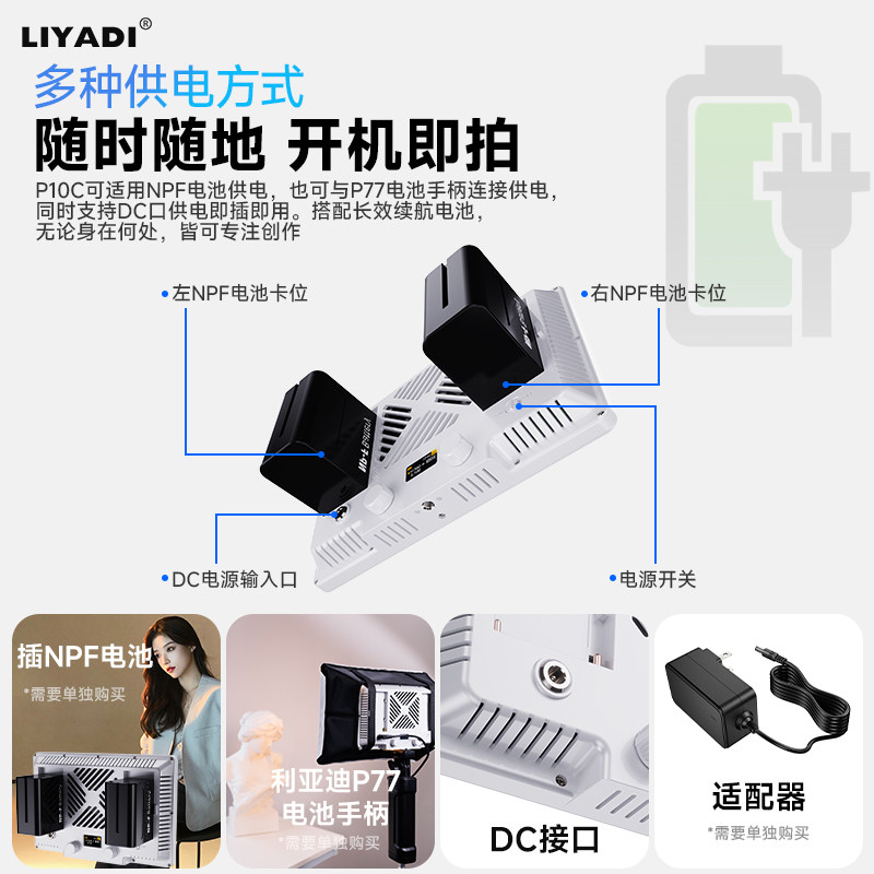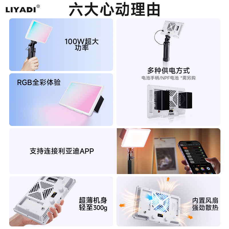 --------------------- 利亚迪P100C轻便全彩外拍平板补光灯100W摄影直播视频常亮灯 【原售价】407元 【现售价】306元 【推荐理由】