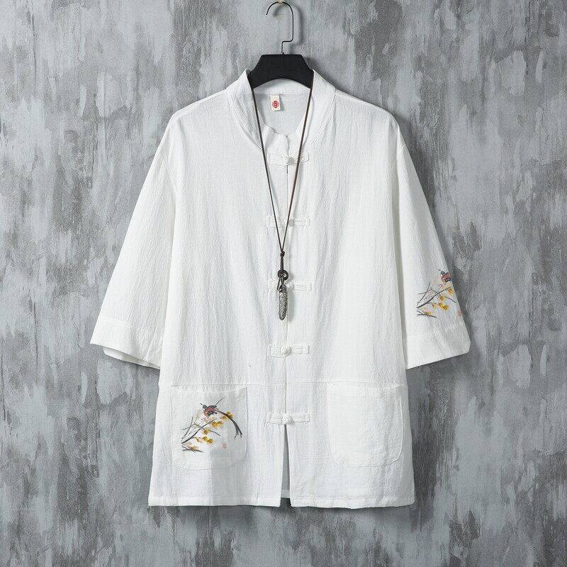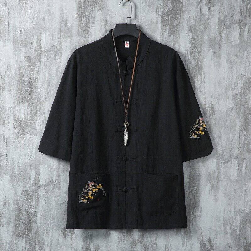中国风男式短袖衬衫夏季薄款棉麻半袖衬衣中式唐装改良汉服上衣潮