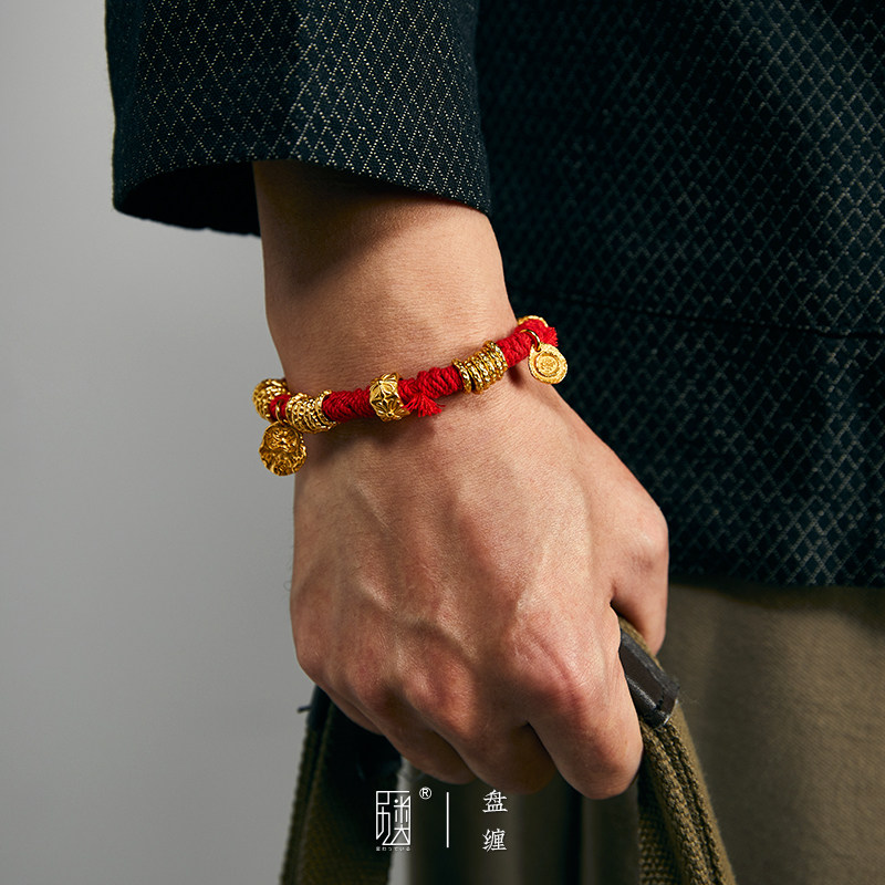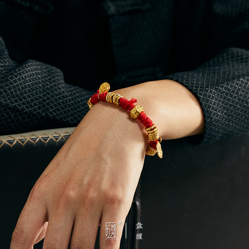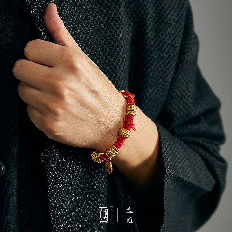 手工编织【盘缠】转运手绳男女百搭红绳本命年纯银镀24K黄金手链
