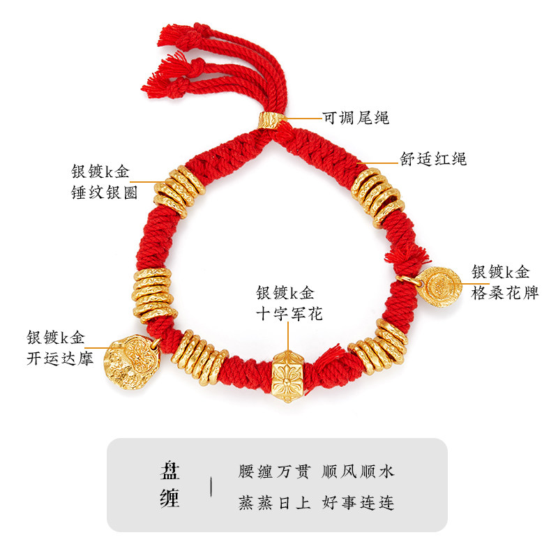--------------------- 手工编织【盘缠】转运手绳男女百搭红绳本命年纯银镀24K黄金手链 --------------------- --------------------- 【原价】1119元 【券后价】1111元