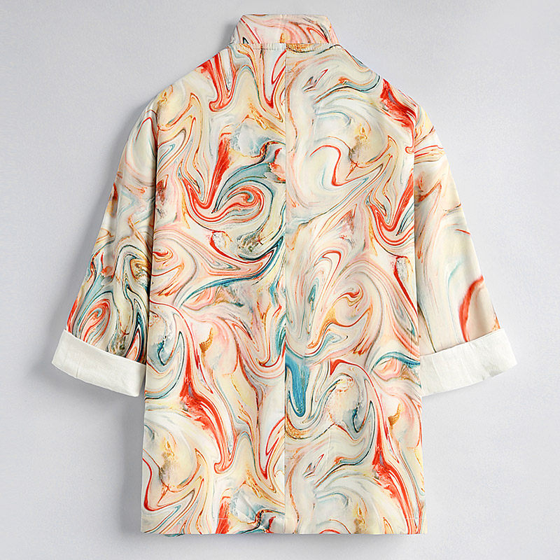 --------------------- 春季唐装男彩条印花中袖开衫外套国潮复古盘扣七分袖上衣男中国风 【原售价】398元 【现售价】222元 【推荐理由】