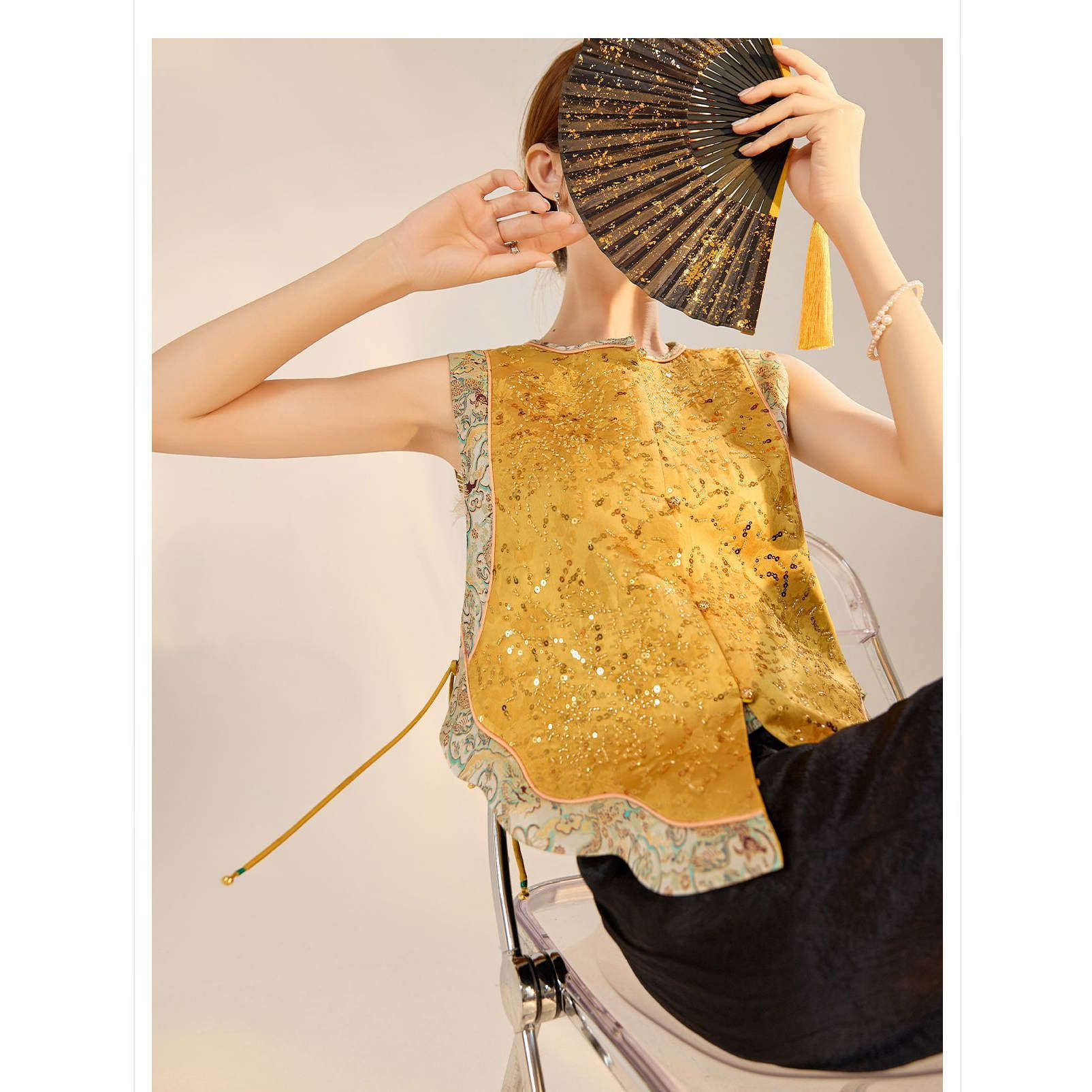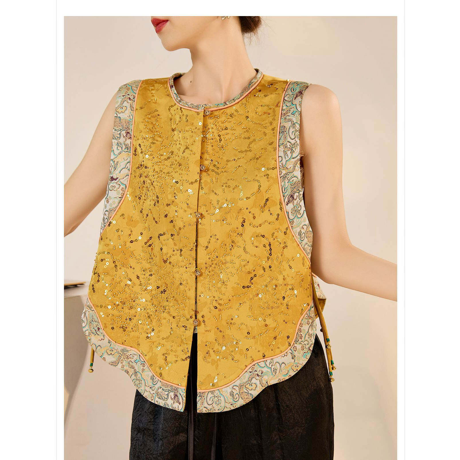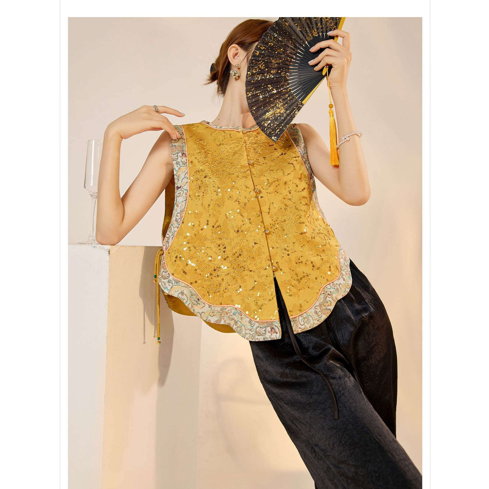 --------------------- 高端复古新中式国风马甲女2025新款复古盘扣重工刺绣钉珠设计背心 【原售价】279元 【现售价】269元 【推荐理由】