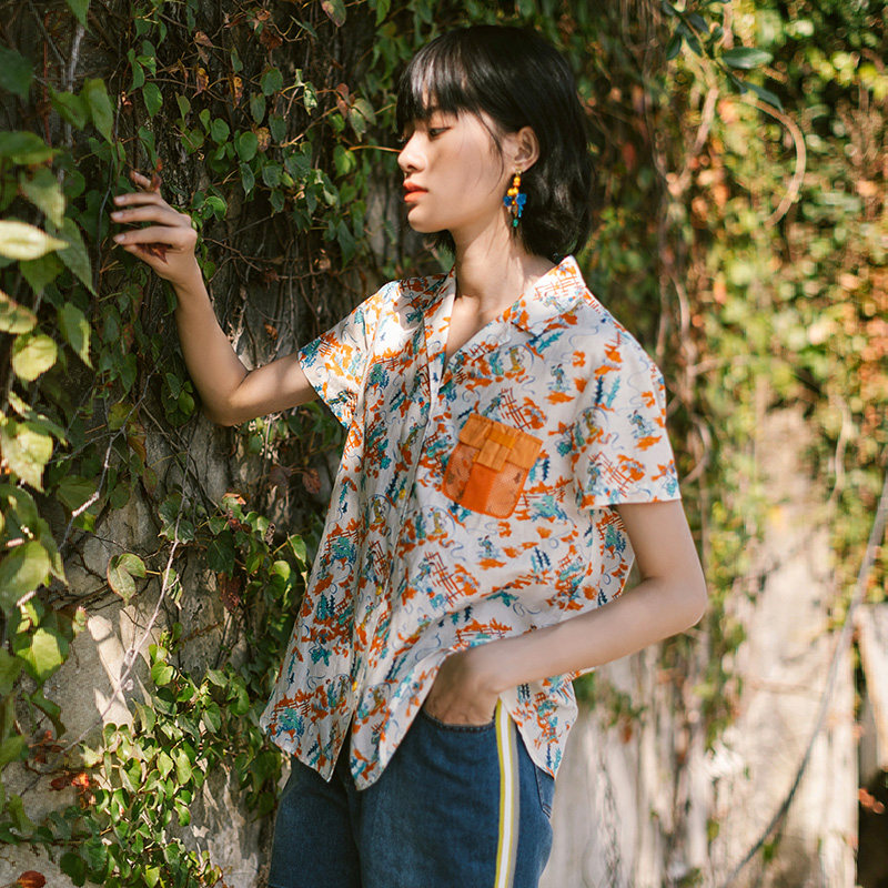 --------------------- 非鱼夏季新款威夷短袖衬衫设计感国潮印花衬衫女装丝绵上衣 --------------------- --------------------- 【原价】958元 【券后价】182元