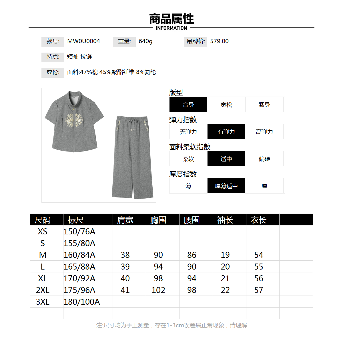 2026年夏装Outlets专柜 MW系列 国风休闲短袖外套+长裤两件套装女