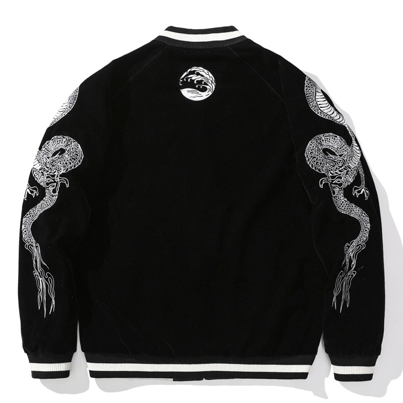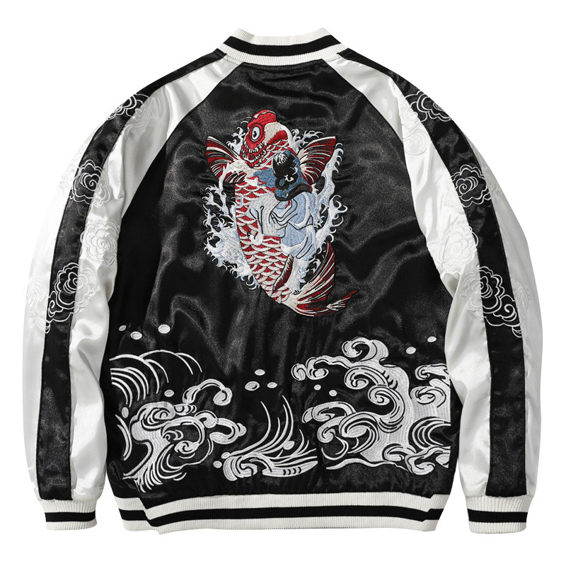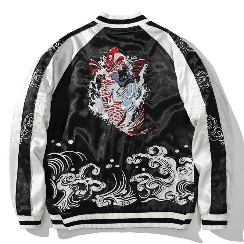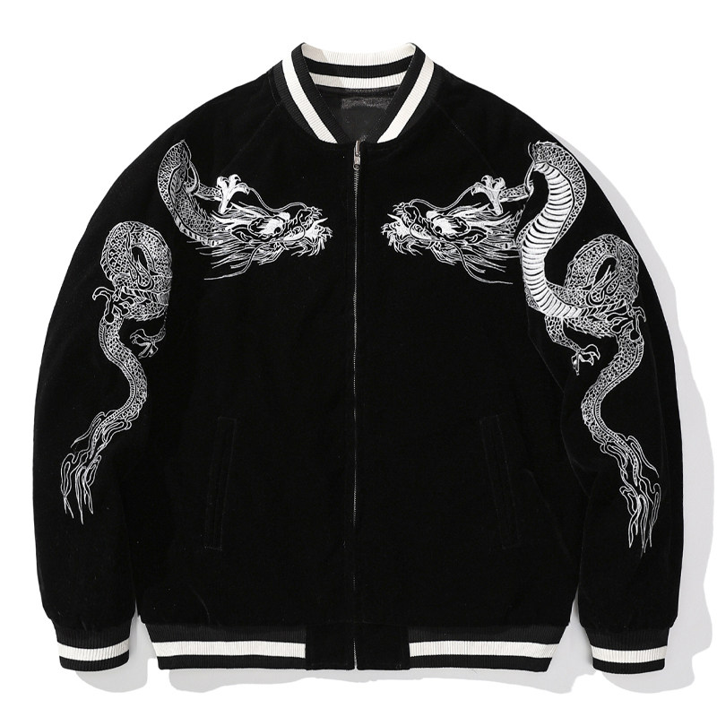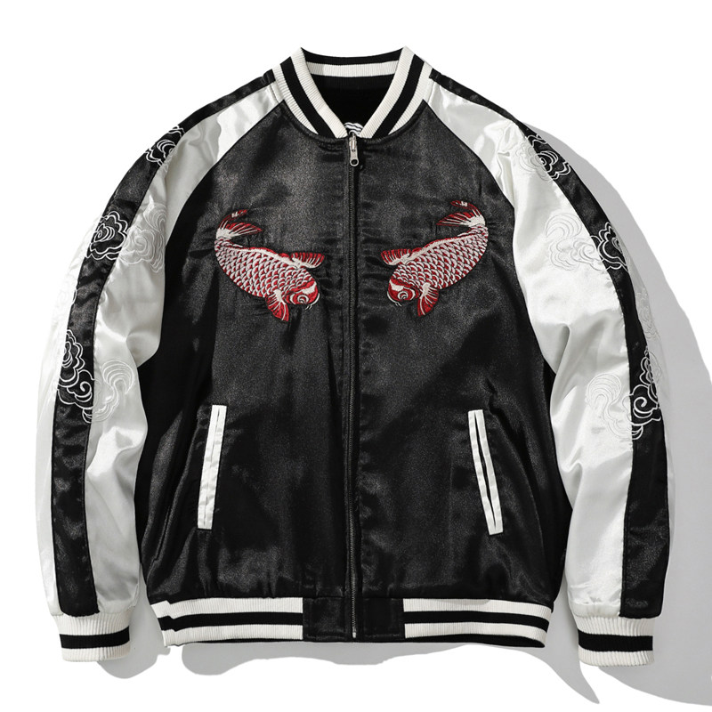 飞龙刺绣夹克男棒球服横须贺绣花双面穿鲤鱼国潮个性外套春秋上衣