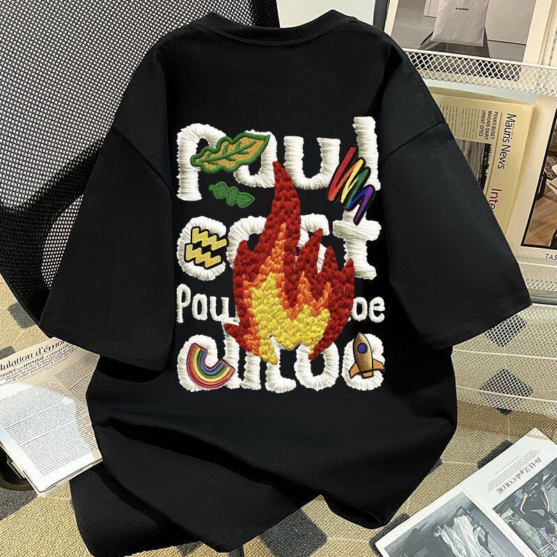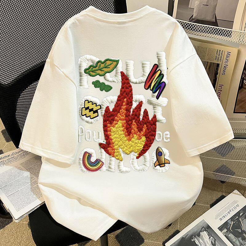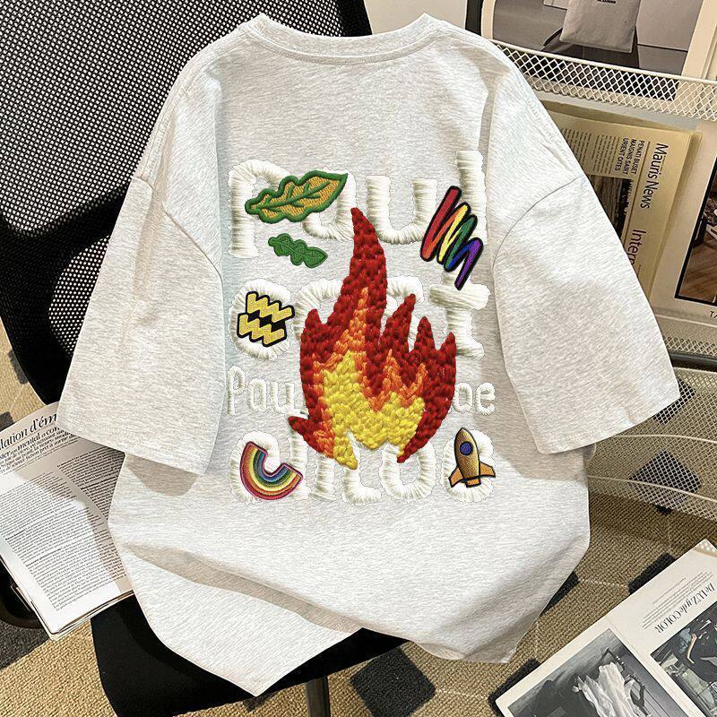 淘宝Wassup联名重磅新款火焰字母印花短袖T恤宽松百搭休闲ins情侣上衣
