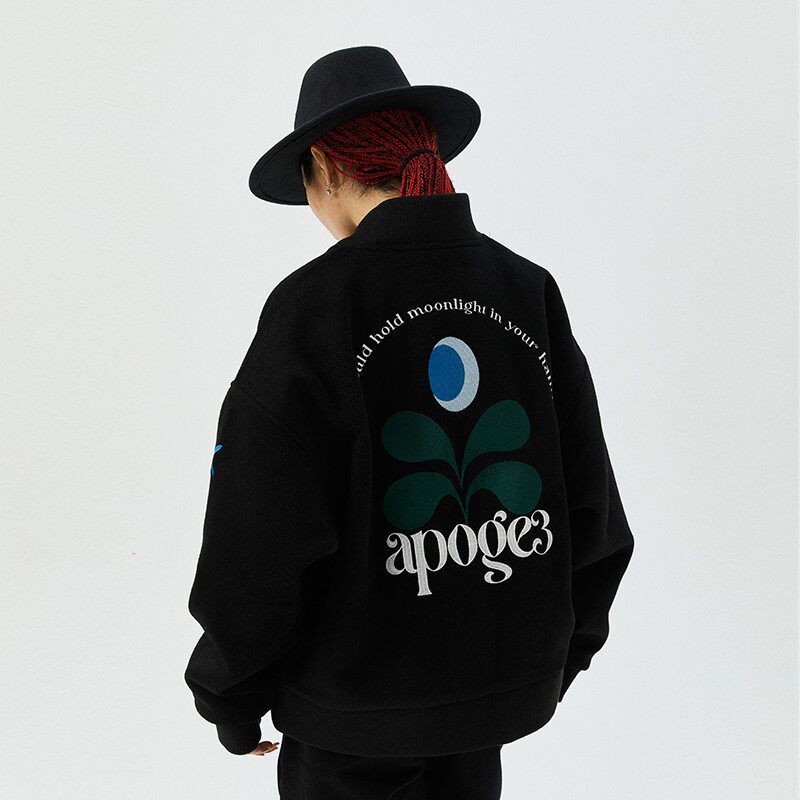 --------------------- APOGE3阿保机月亮花飞行夹克男潮牌毛呢棒球服美式宽松情侣外套女 【原售价】289元 【现售价】210元 【推荐理由】