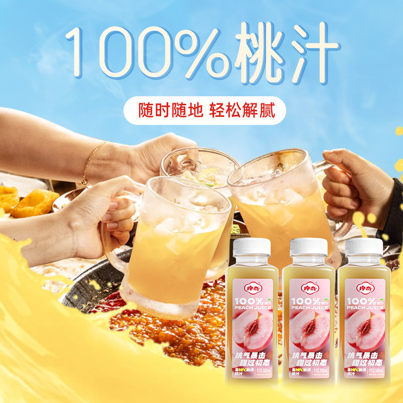 淘宝摩奇100%果汁饮料 橙汁桃汁葡萄汁300ml*20瓶整箱装 0脂0添加剂