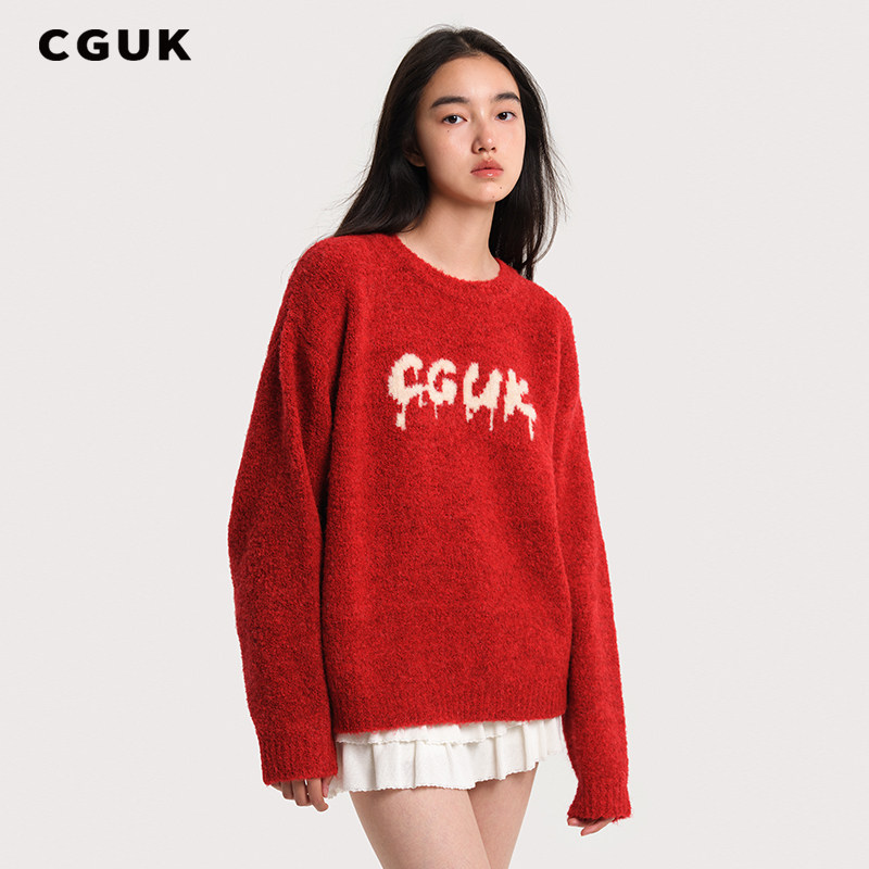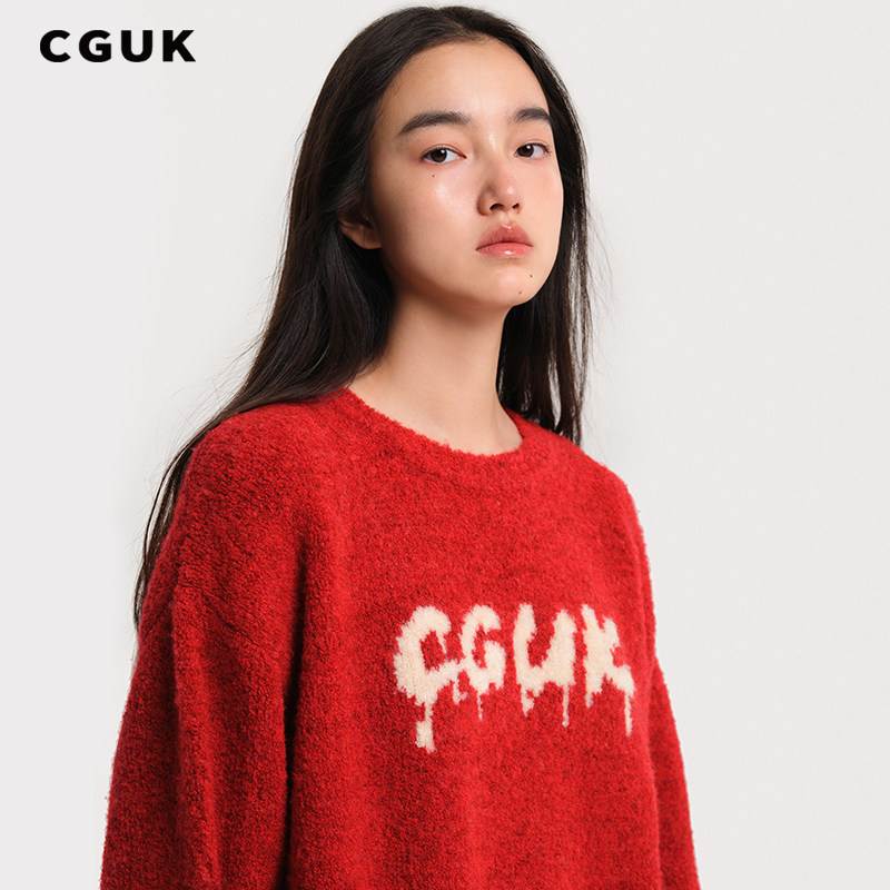 【艾米/鹤男同款】CGUK 宽松圈圈纱提花毛衣 红毛衣