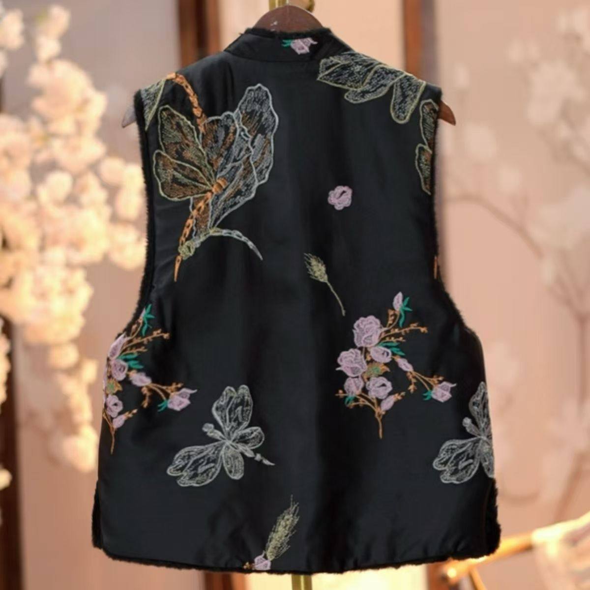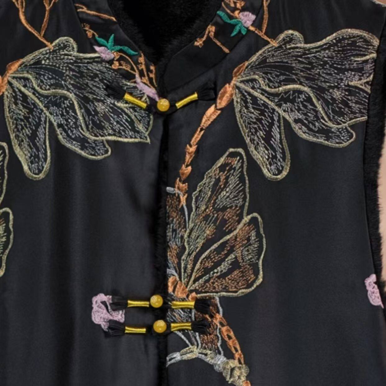 雅梅芳双面穿宽松加绒加厚2025新中式国风重工刺绣女士百搭马甲