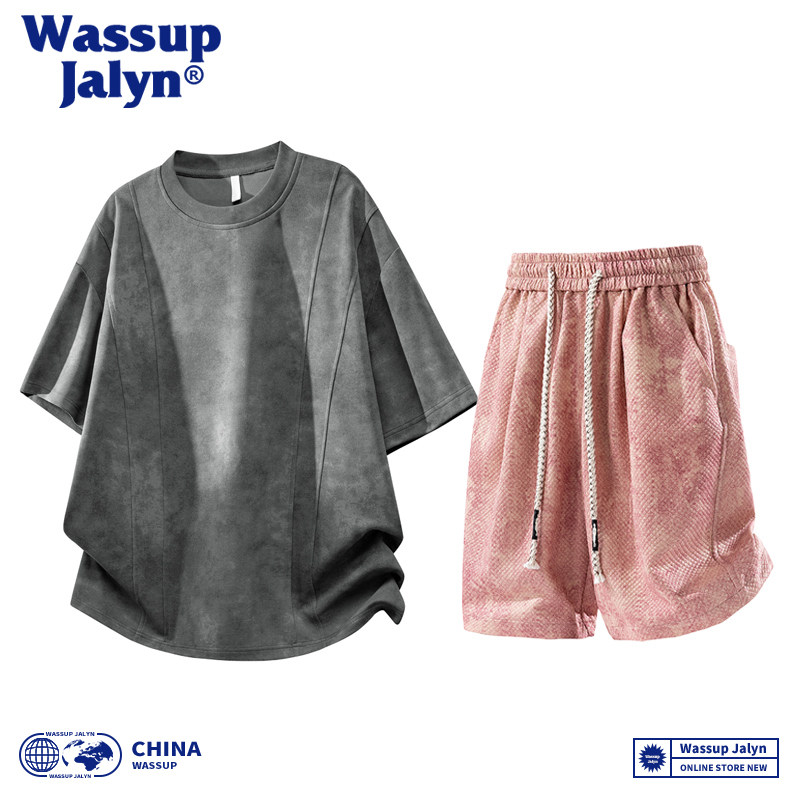 WASSUP JALYN美式短袖T恤套装男夏季潮牌宽松半袖休闲短裤两件套