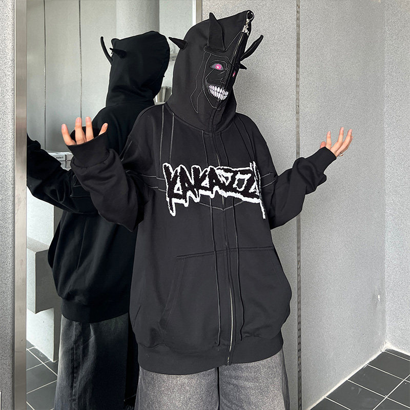 KAKAZZY美式oversize卡通连帽外套男女情侣设计感高级感开衫卫衣