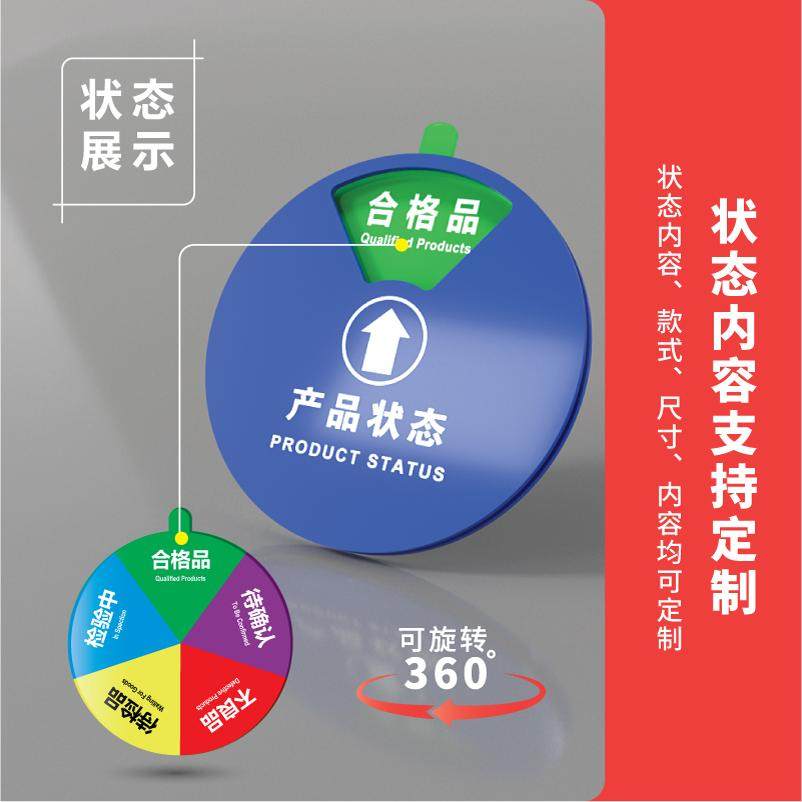 工厂车间产品状态牌待检验合格品不良品标识牌定制强磁吸式机器设备管理牌亚克力新款现货圆形旋转卡背胶粘贴